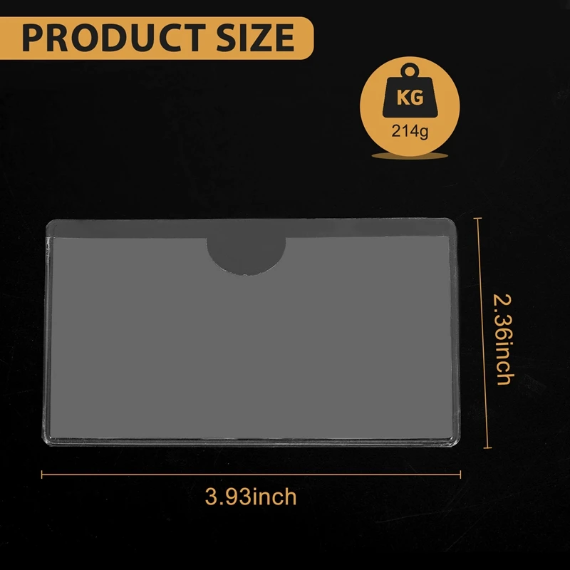 Features: the double-sided transparent card pockets are easy to view the inner information, and the back has gum design that has strong viscosity, easy to use, not easy to break; the open top design is easy for loading item