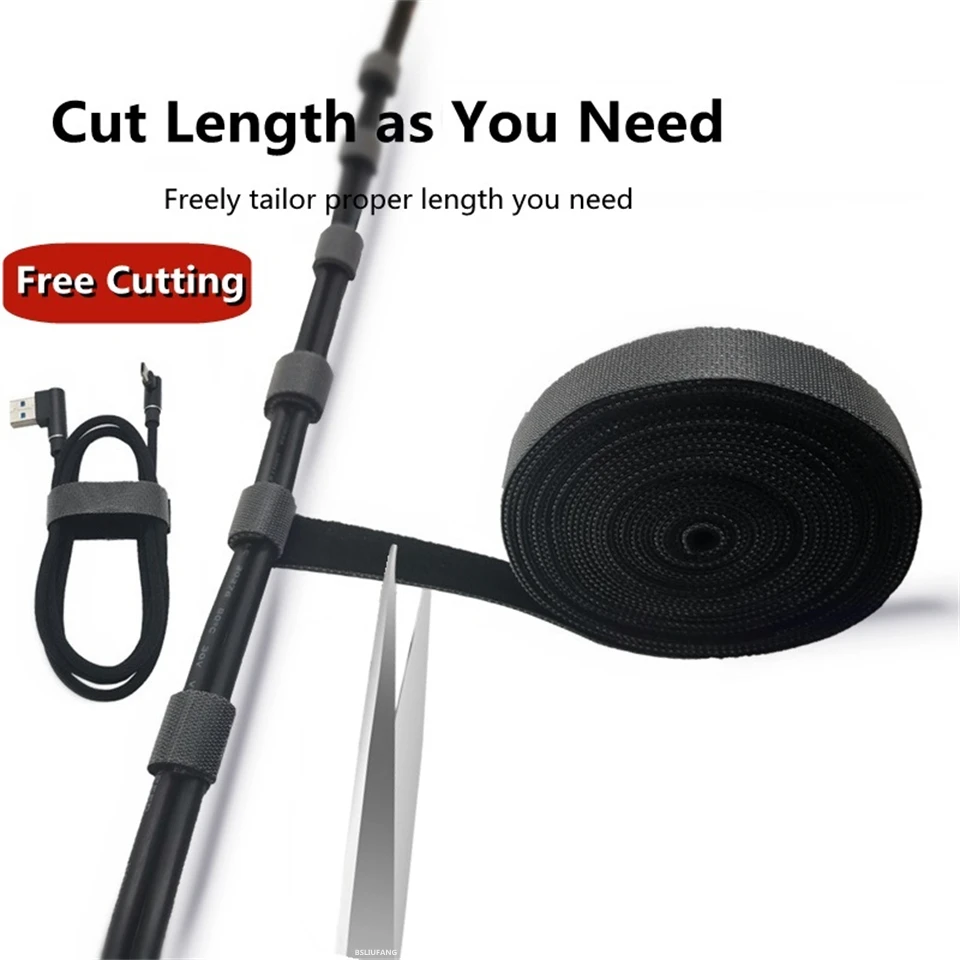 1m 3m 5m/Roll Fastening Tape Cable Ties Reusable Hook and loop Straps Double Side Hook Roll Wires Cords Manage Organizer Straps