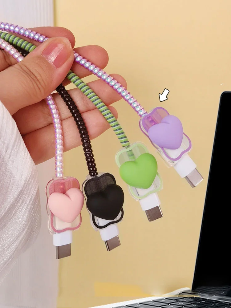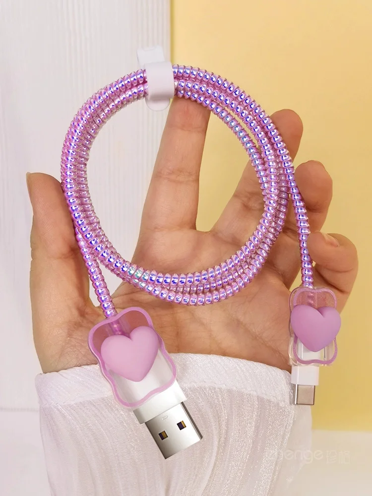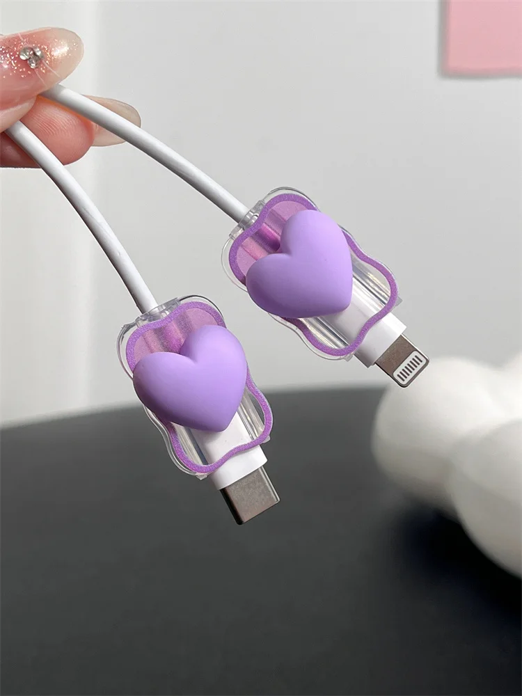 Pink Cute Love Heart Gradual Change Charger Protector Cover Charger Line Protectors Organizer Winder Protector Cover Accessories