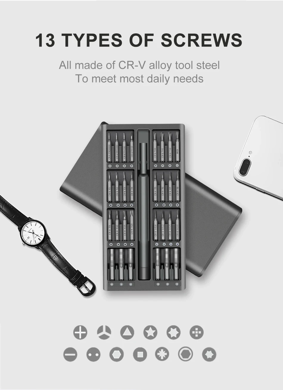 【High-Quality CR-V Metal】Mini screwdriver set is made of CR-V Alloy, which is impact-resistant, wear-resistant, sturdy and durable. All bits are well made with strict quality control with high precision to make sure all your repairing work precisely and reliable.
