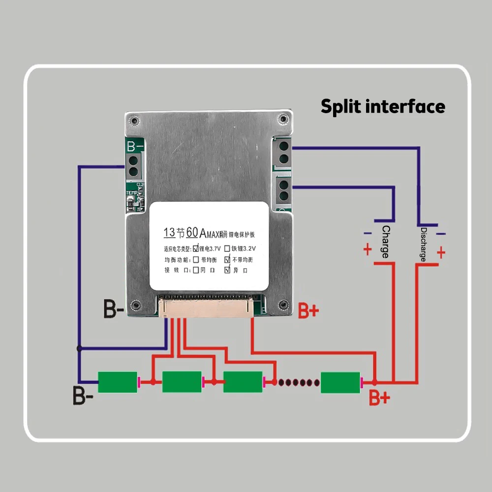 5.It is suitable for 13 series lithium-ion batteries, which can be used for 3.7V ternary battery, manganese acid battery and cobalt acid battery.