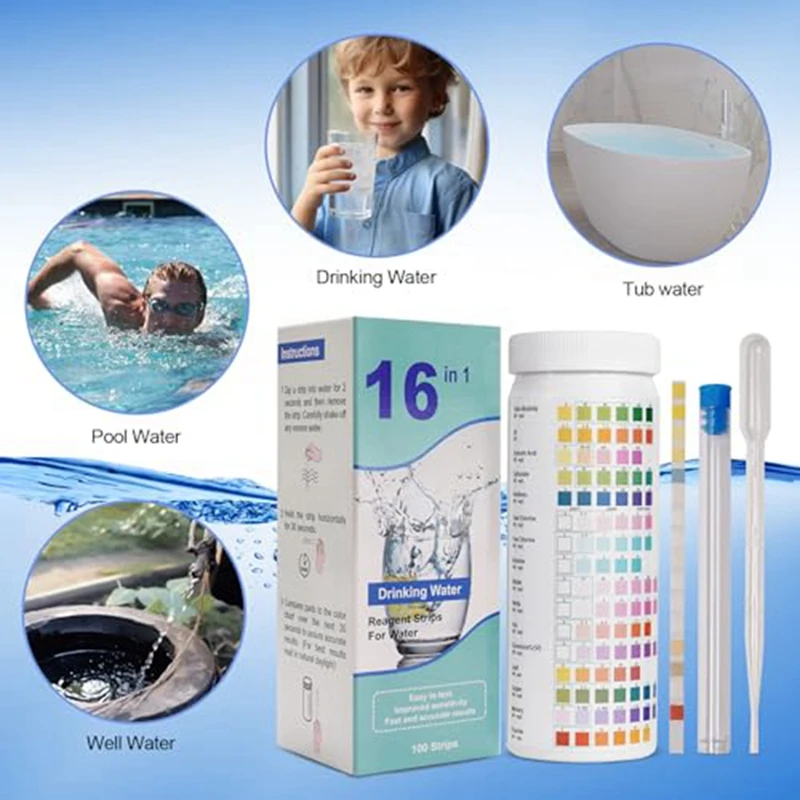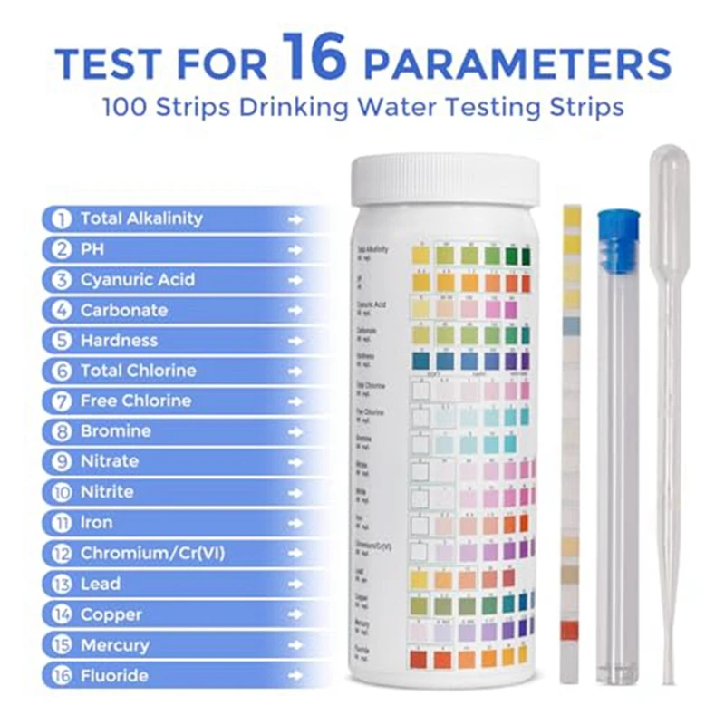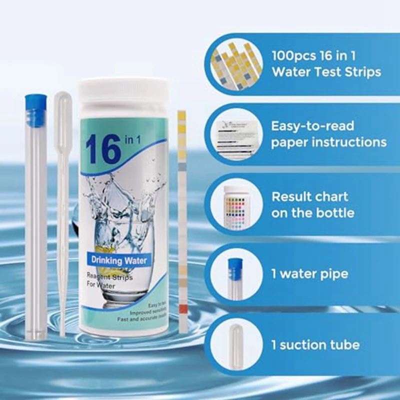 16-In-1 Water Test Strips Fluoride Test Kit 100 Strips Home Water Quality Test Kit