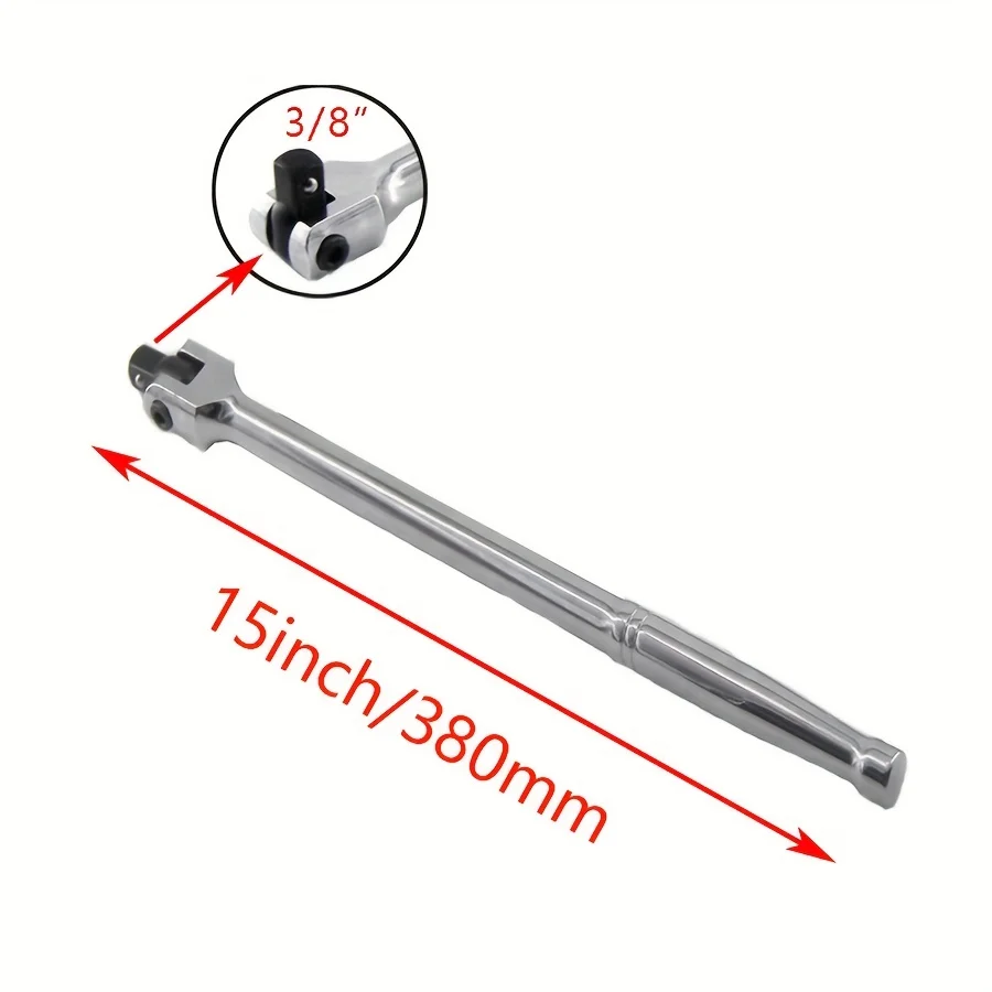 3/8 inch Drive Heavy Duty Breaker Bar Use for Stubborn Nuts and Bolts 380MM LengthMaterial: CRV(50Bv30 )Hardness:45-47 HRCBody Surface:Bright Chrome PlatingHead Suface: Black PlatingLength: 380MM