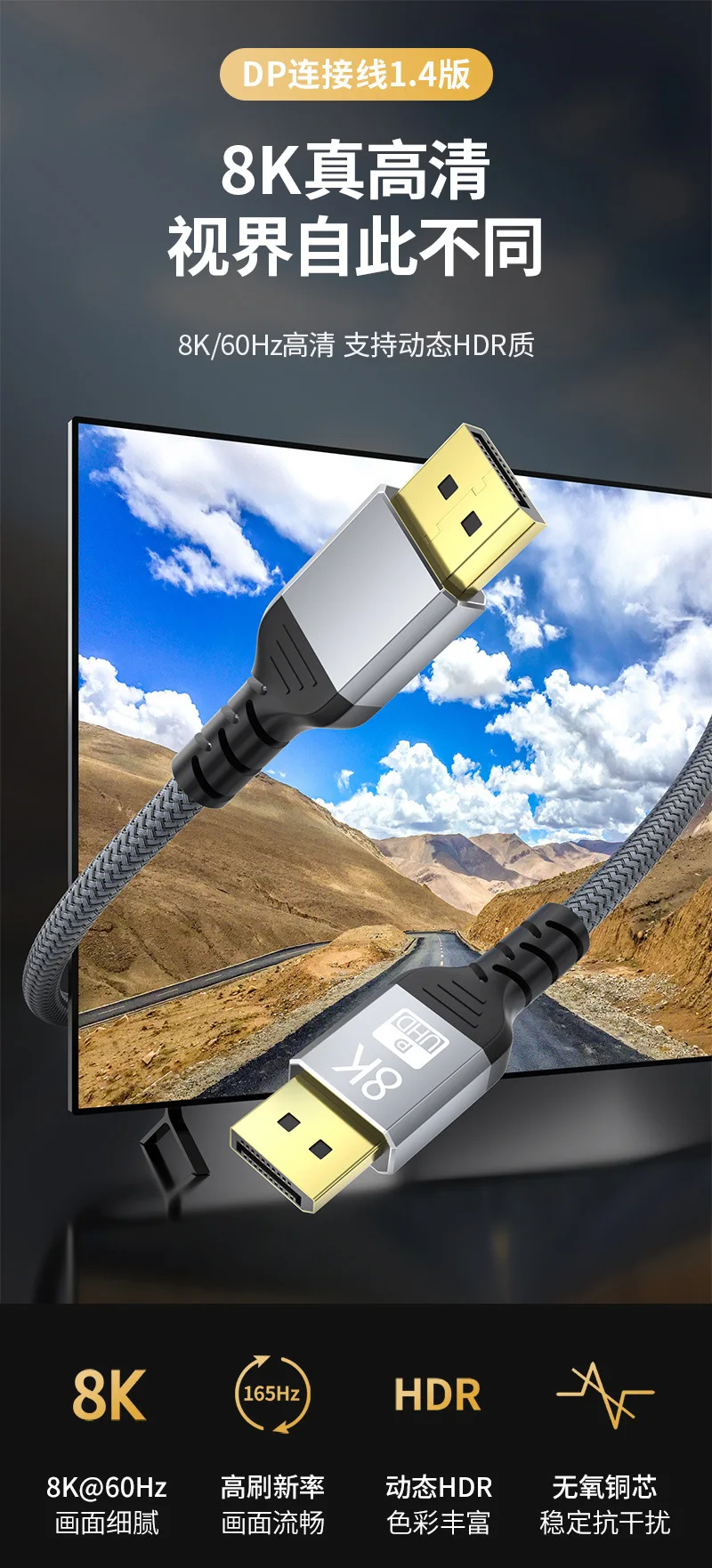 DP1.4 8K 60Hz Displayport Cable 2m 1m 1 4 DP Cable 4K 144Hz 5m 3m Shielded HDR 32Gbps Video Audio Cable for Laptop TV Projector