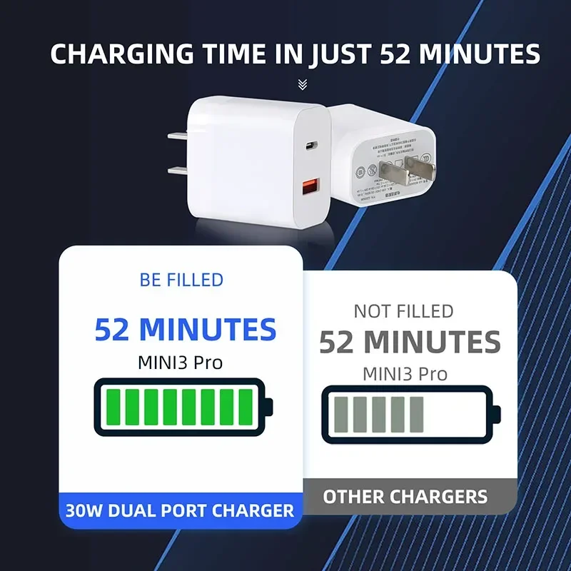 30W Charging Plug Gallium Nitride Charger USB PD Port with Type-C Cable for DJI Mini 3 3Pro / Mini 4 Pro Drone Accessories