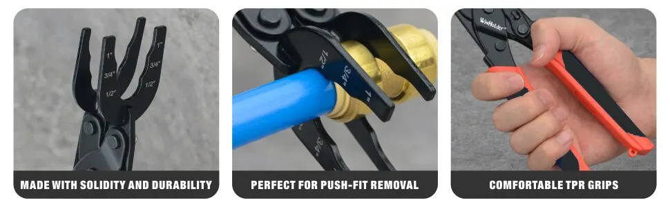 Easy to Use: slide the tongs over the fitting and the pipe, squeeze the tongs to press the fittings release collar and pull the pipe from the fitting, which is fast and efficient to pop off the connector without much effort