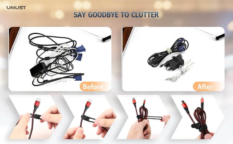 • 【Flexible Design& Reusable】The Cord management organizer is button design, can be opened and fastened quickly without worrying about falling off, It can be reused and will not be wasted!You can also hang up bundled items to save more space.