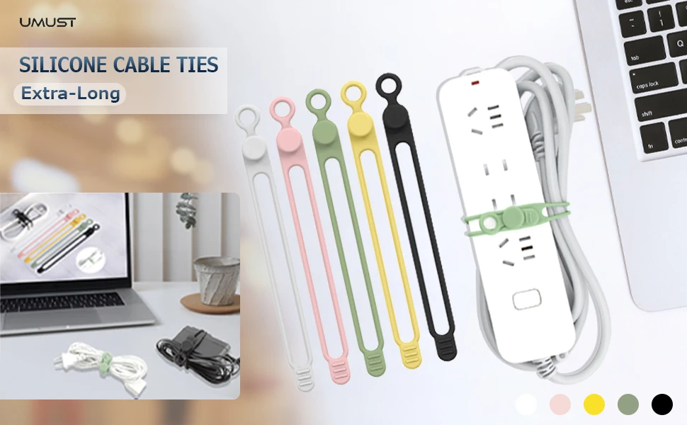 UMUST Extra-Long Reusable Cable Ties,Silicone Cable Straps,Cord Ties,Cable Cord Wire Organizer for Home,Office,Travel(7.1"/18cm)