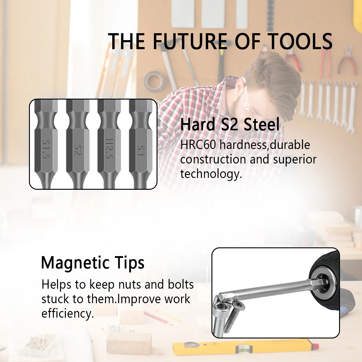 [Strong & Durable] Screwdriver bits are made of S2 alloy steel, with high hardness, rust and corrosion resistant, wear resistant, not easy to break, and can be used for a long time.
