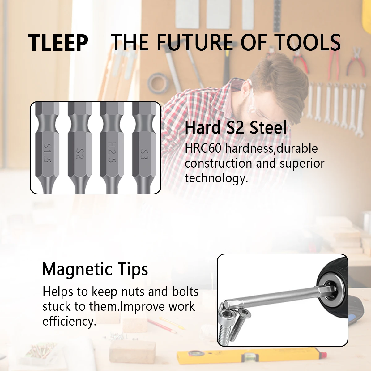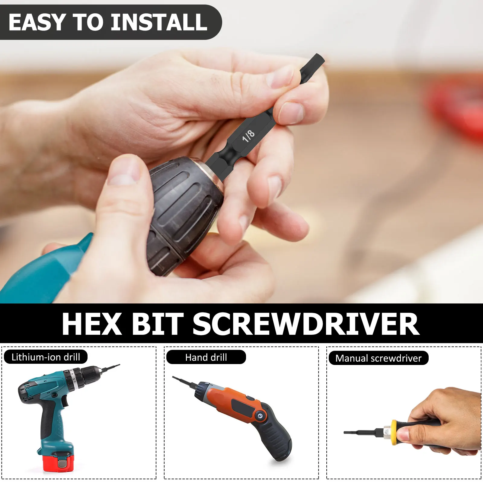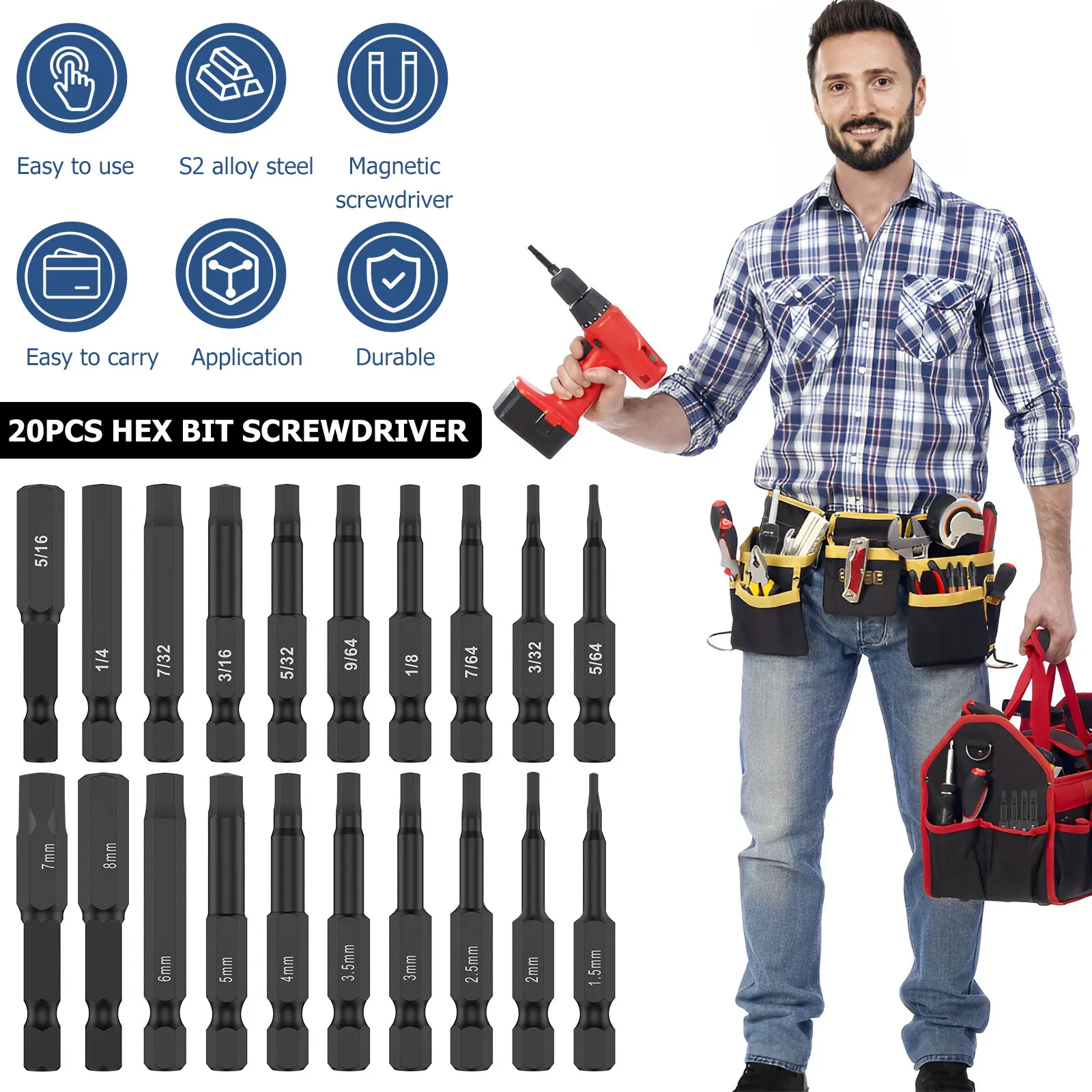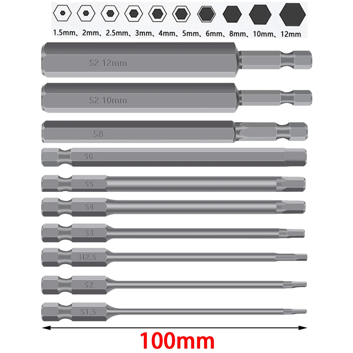 [Premium S2 Alloy Steel Material] This hex wrench drill bit set is made of high quality S2 alloy steel material, which is sturdy and durable to use. It has high precision and has chrome plated mirror bit dealing.
