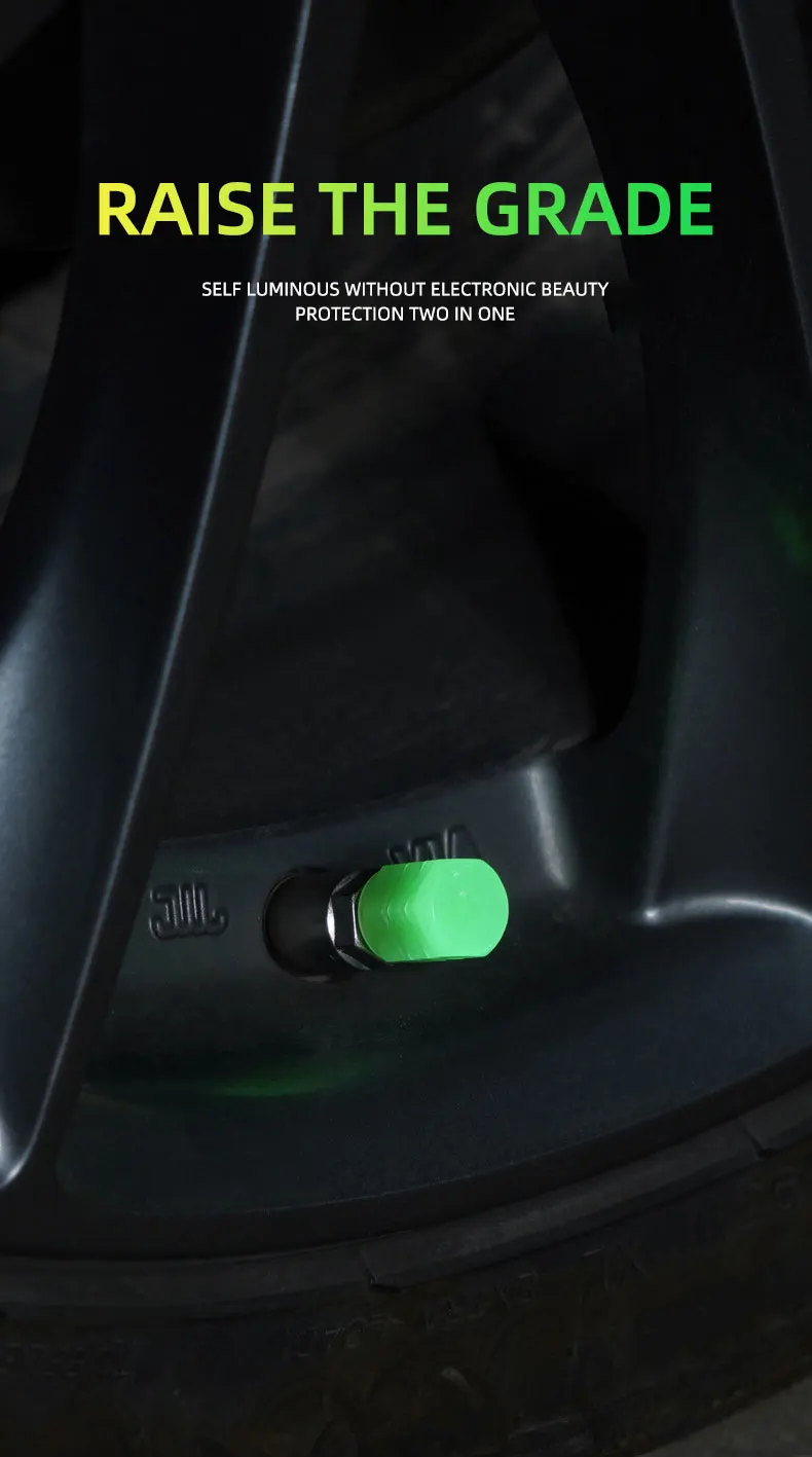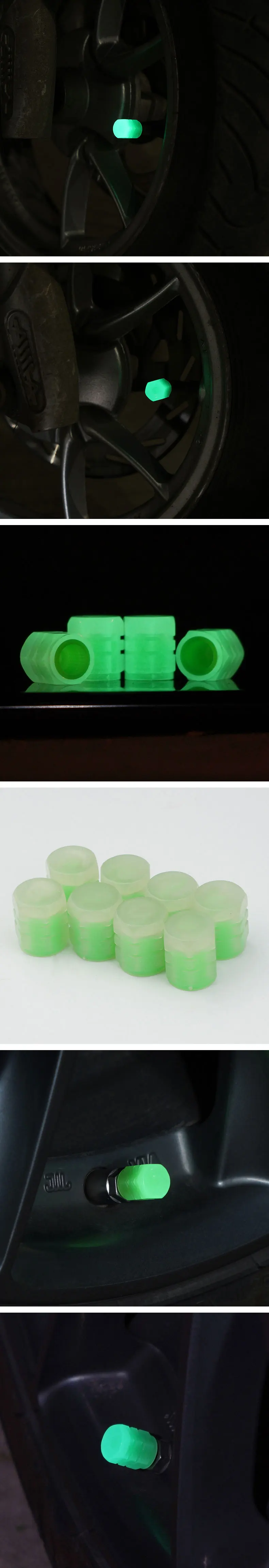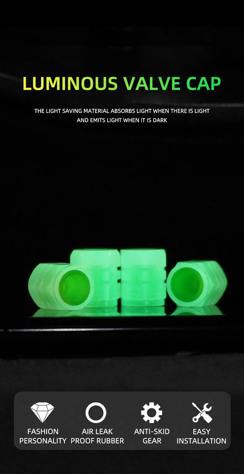 8PCS Luminous Valve Motorcycle Bicycle Bike Car Wheel Tyre Hub Cap Fluorescent Night GlowingLuminous Valve Stem Caps Decor