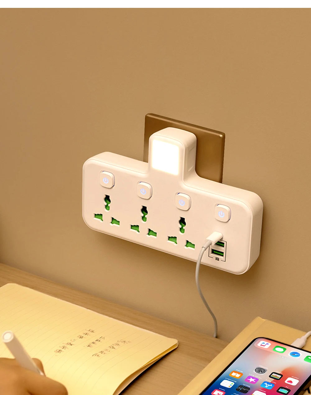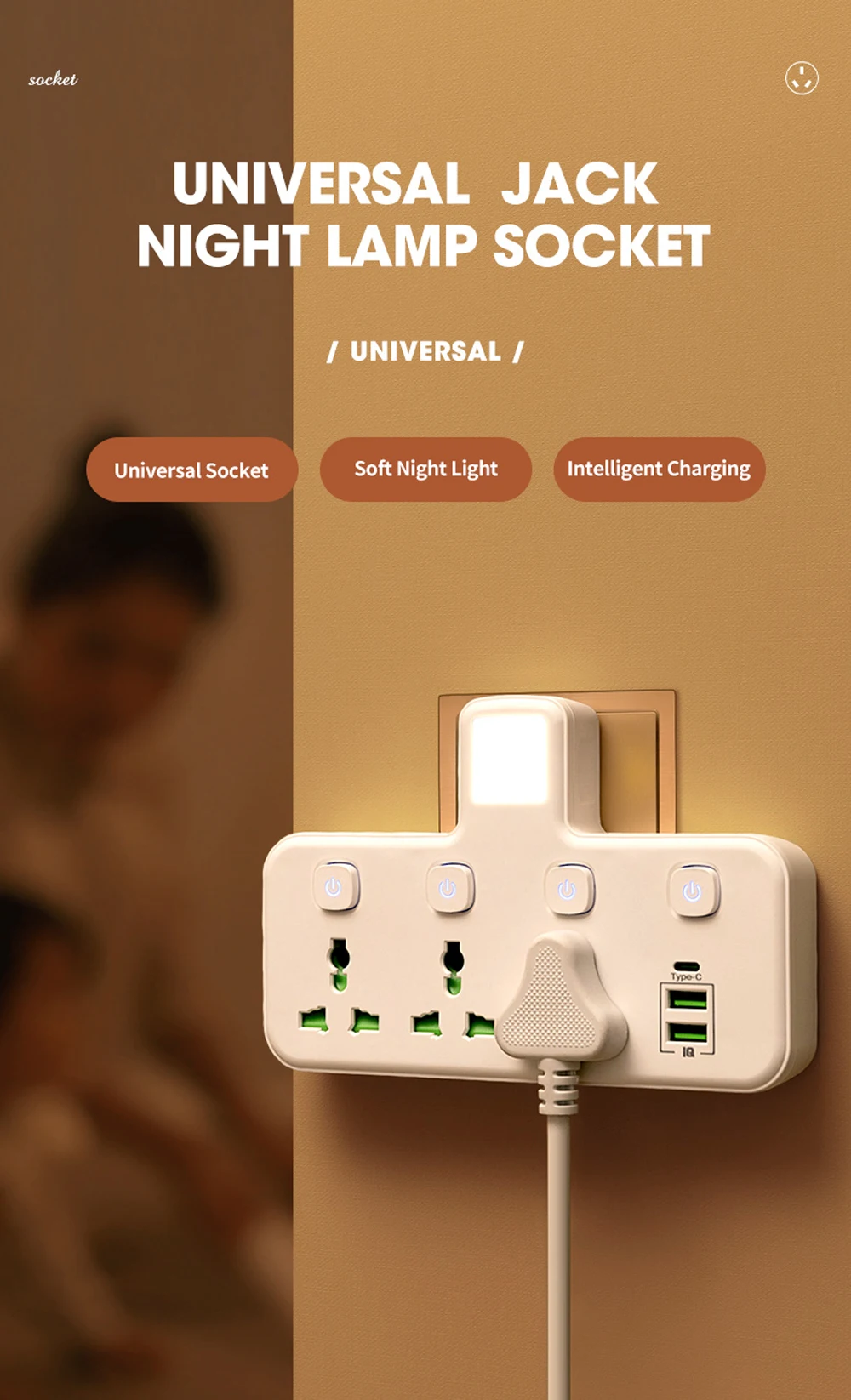 Home Extension Socket : Office Plug with Socket/Smart Power Strip (EU)/Control switch night light