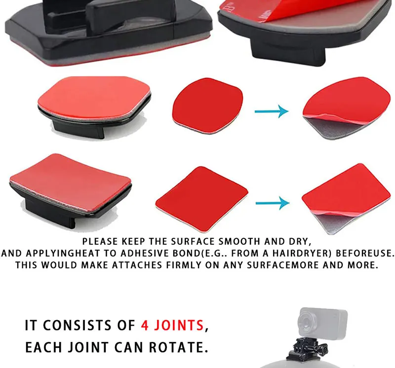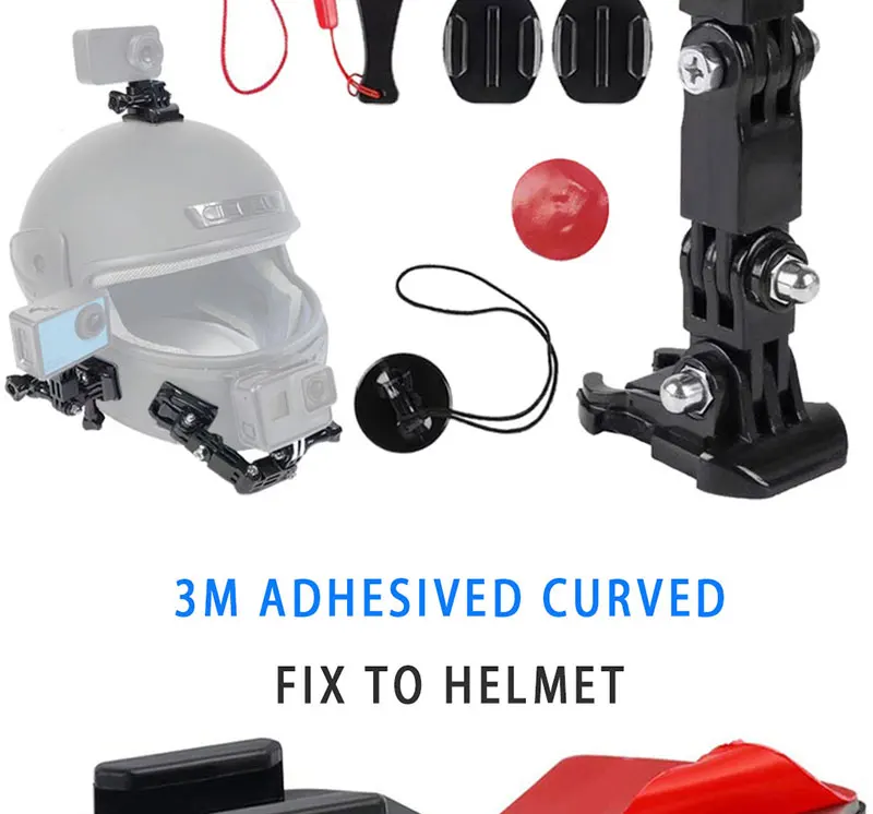 【Adjustable Arm】Helmet mount adjustable arm with curved adhesive pad.To mount in the front, side, or back of the helmet.