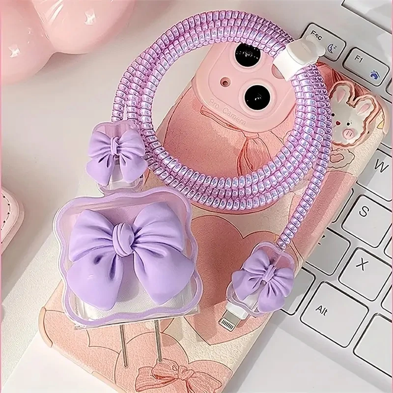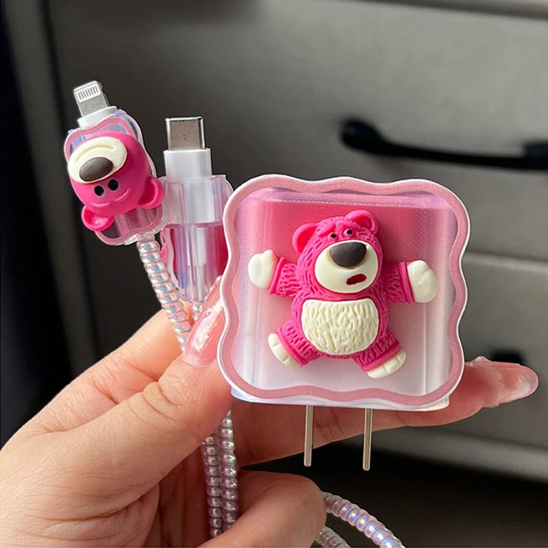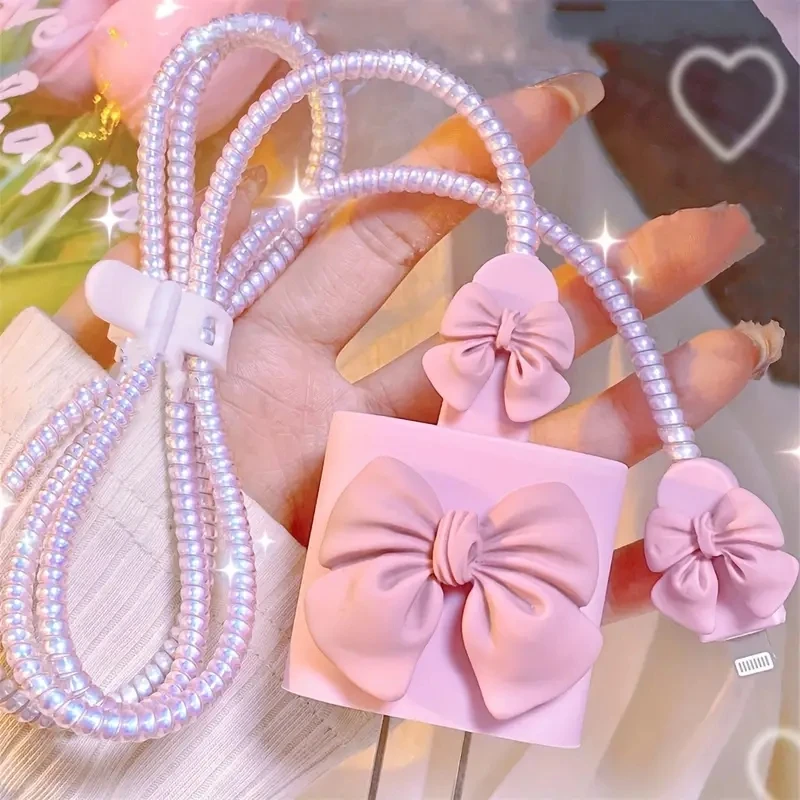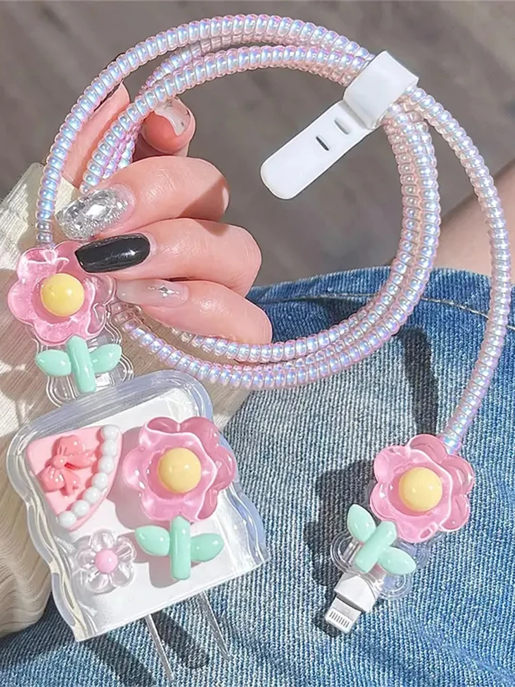 3D Pink Flower Cable Charger Protector Cover For Iphone 15 14 13 Pro Max 18W 20W Charger 2024 New Data Line Protective Sleever