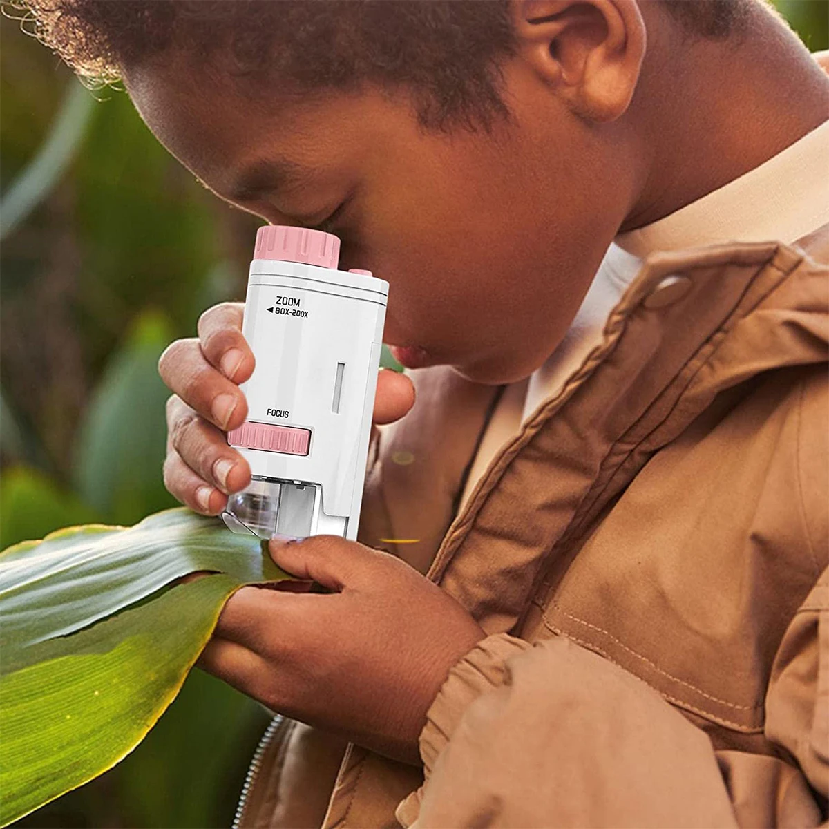New 60-200x Pocket Microscope Electric Mini Microscope with LED Light Portable High Definition Children Microscope for Kids