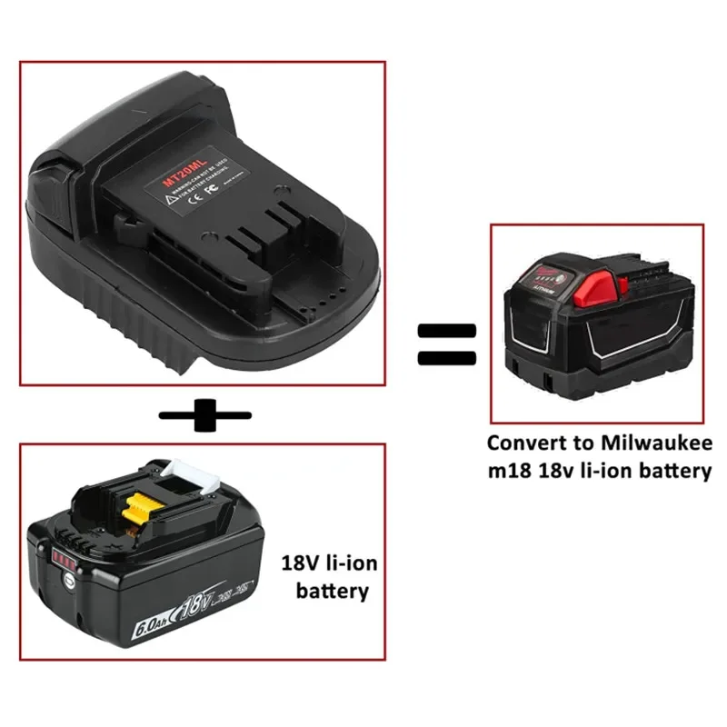 After the above batteries are converted by the adapter, they can be replaced by Miwaki 18V lithium battery series: