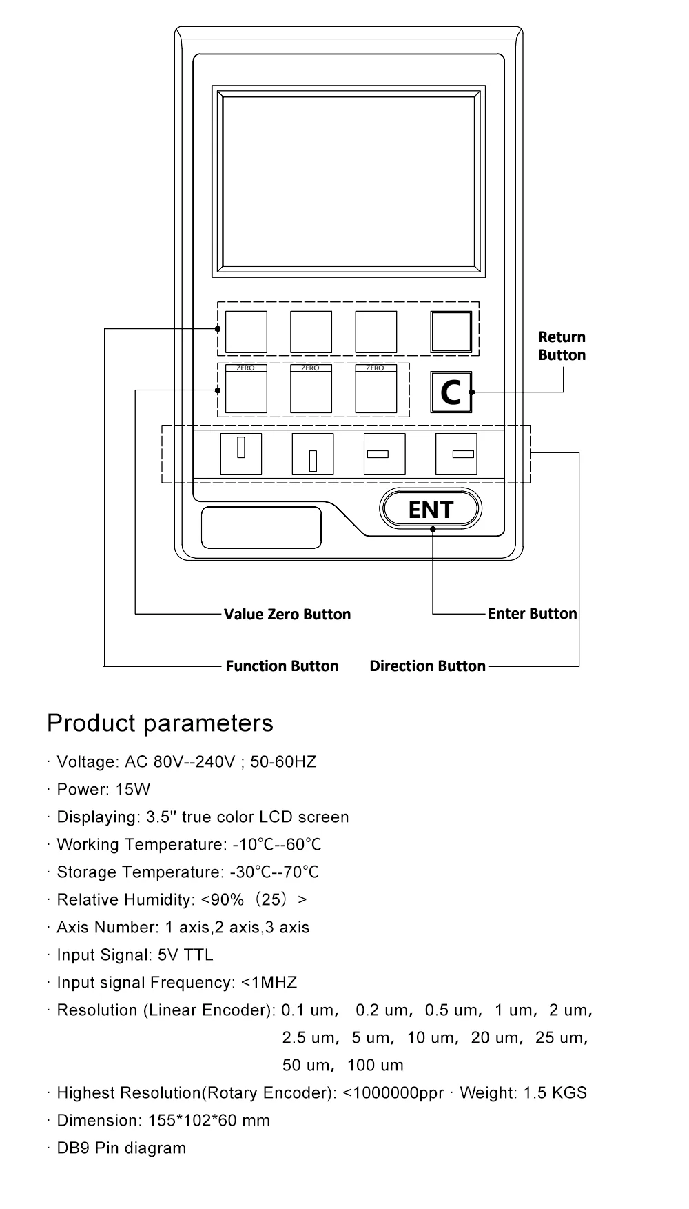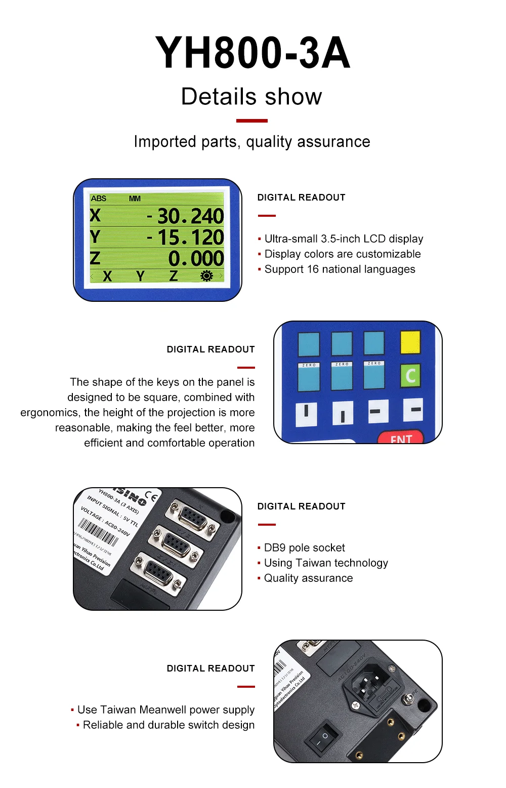 14 Languages LCD DRO YH800-3A Technical Parameter: