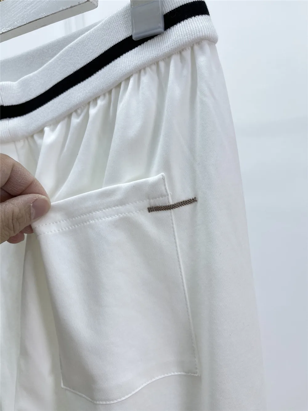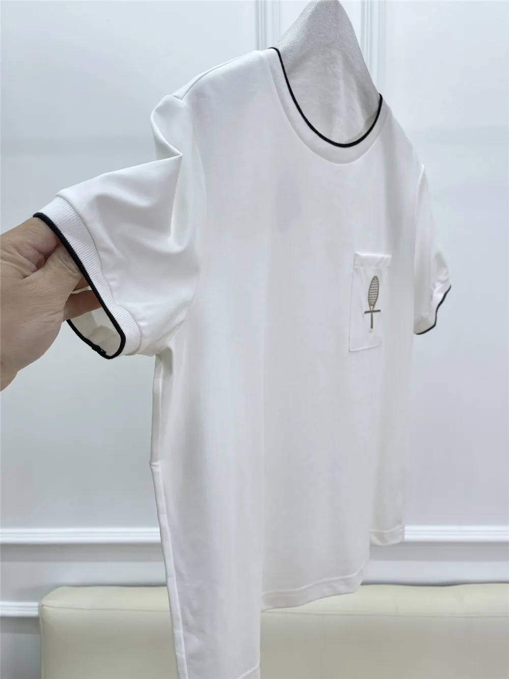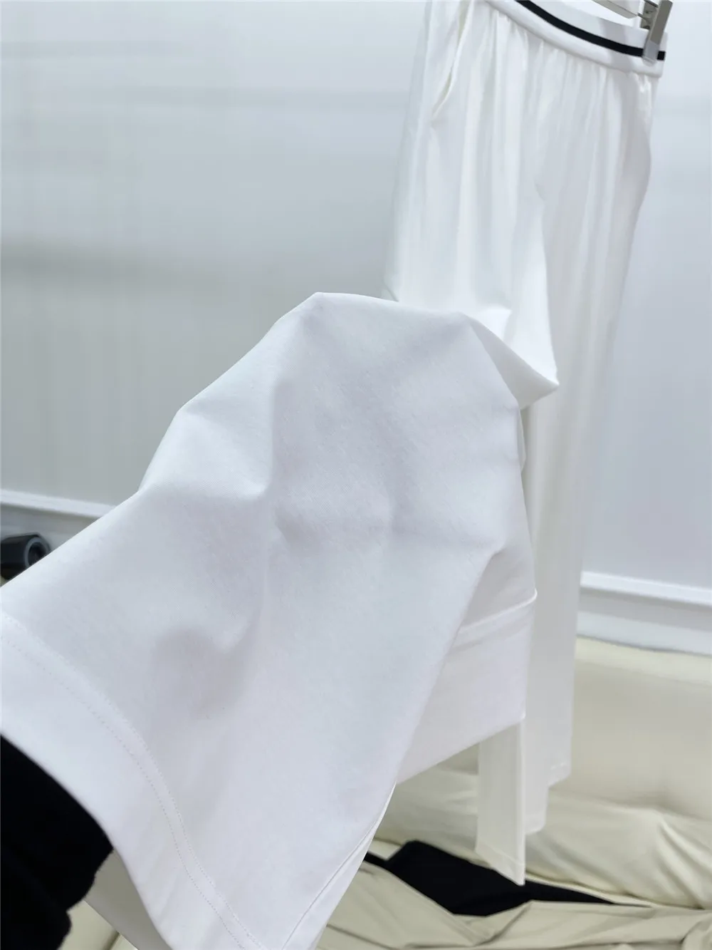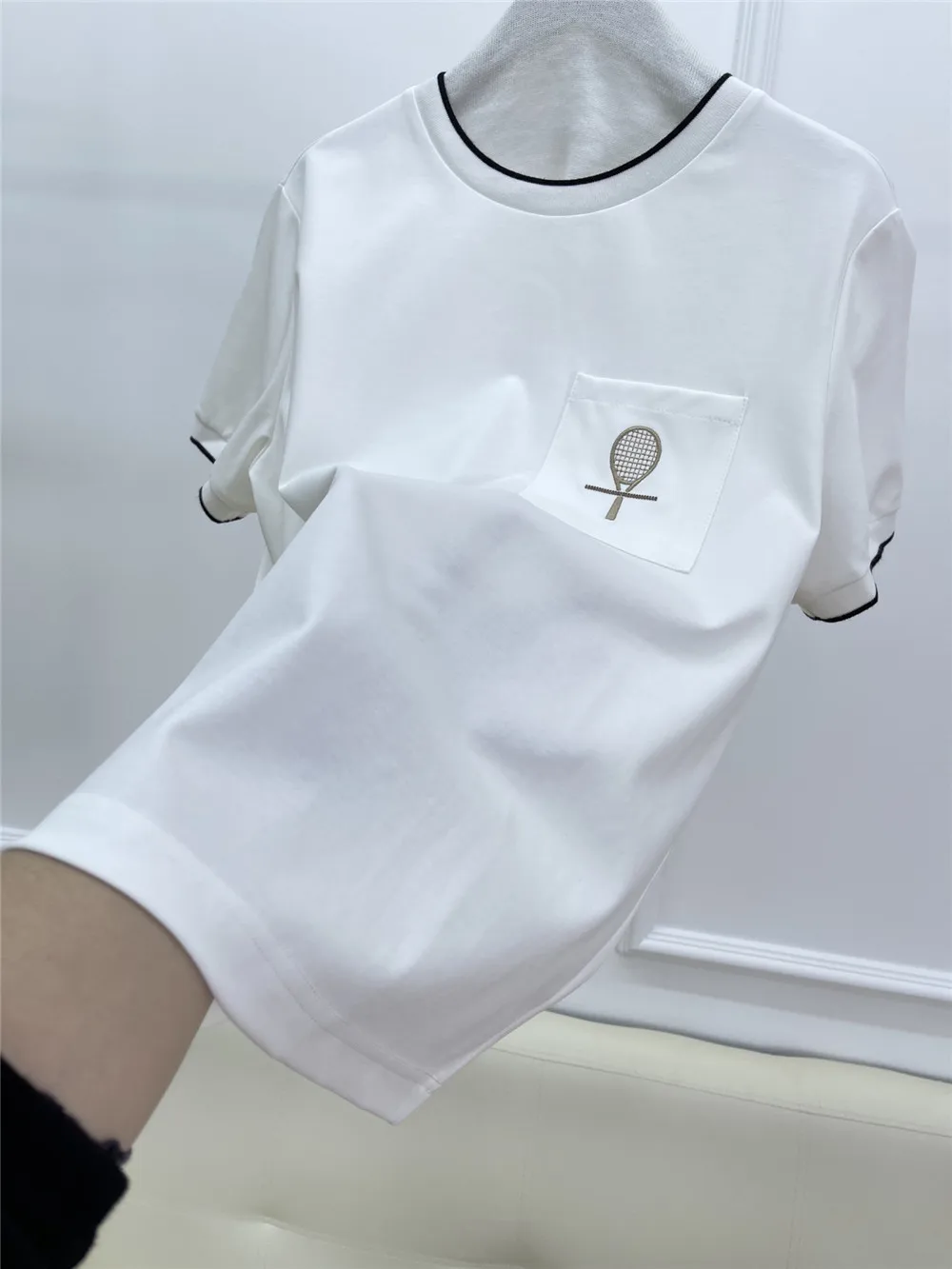Casual Sports Suit For Women Chain Pocket Embroidered T- Shirt + Elastic Waist Wide Leg Pants 2 Piece Set