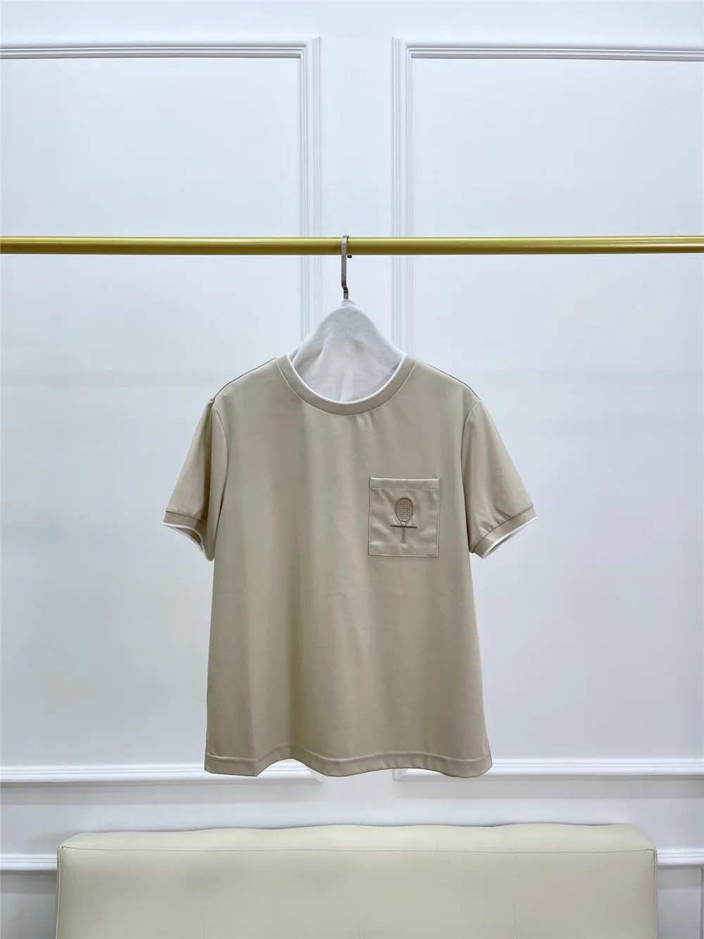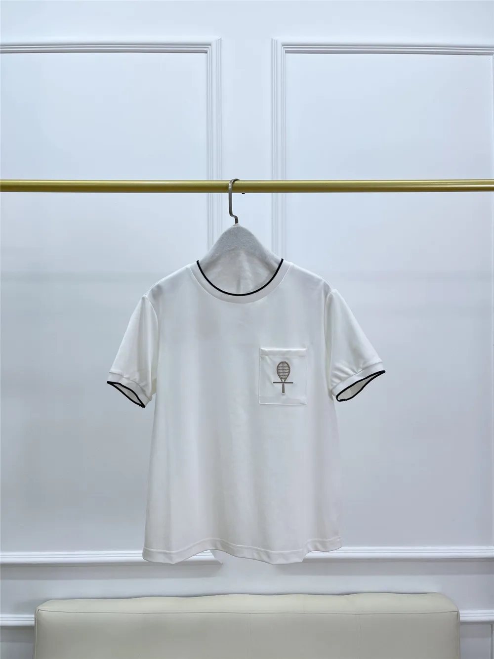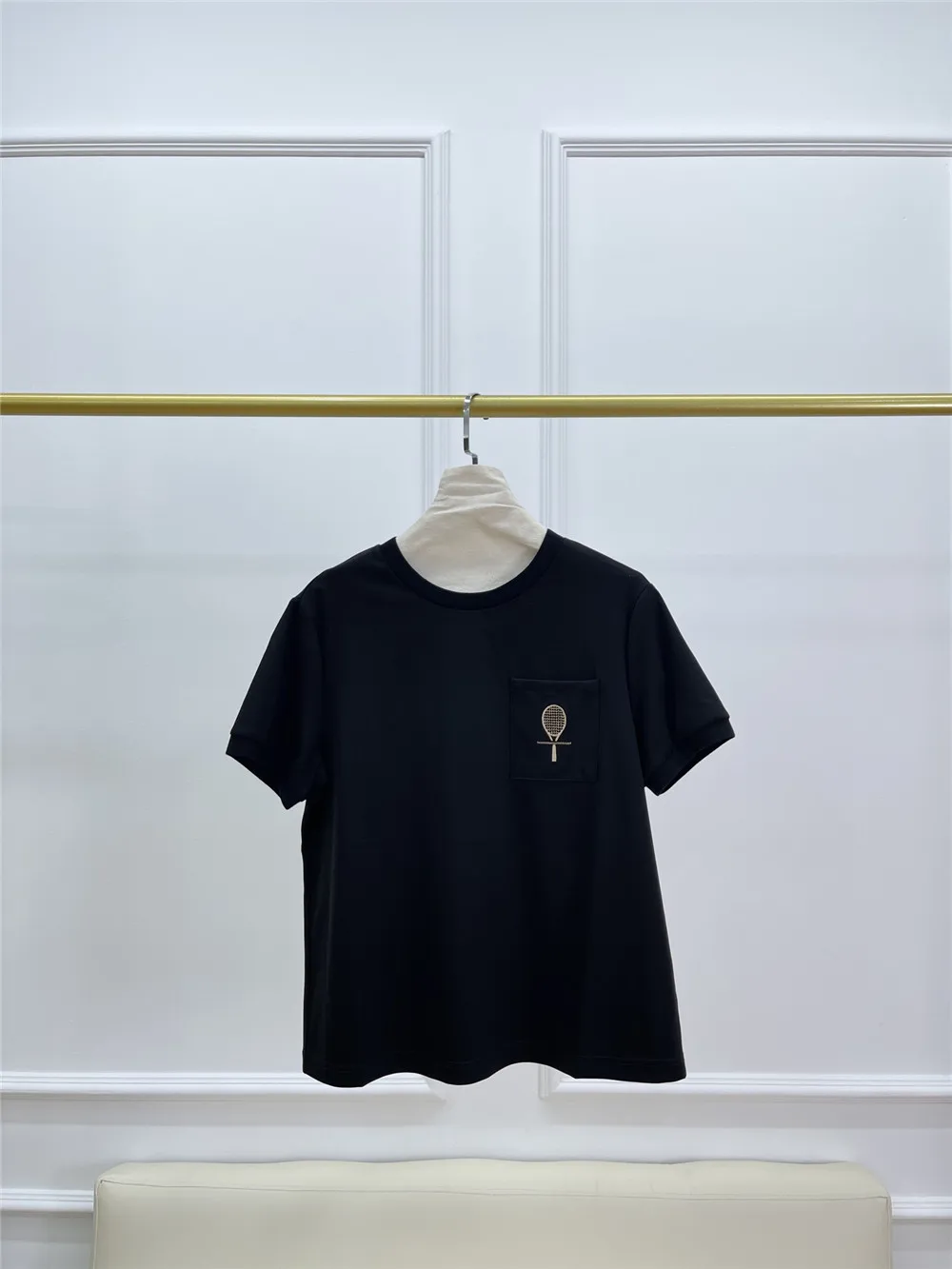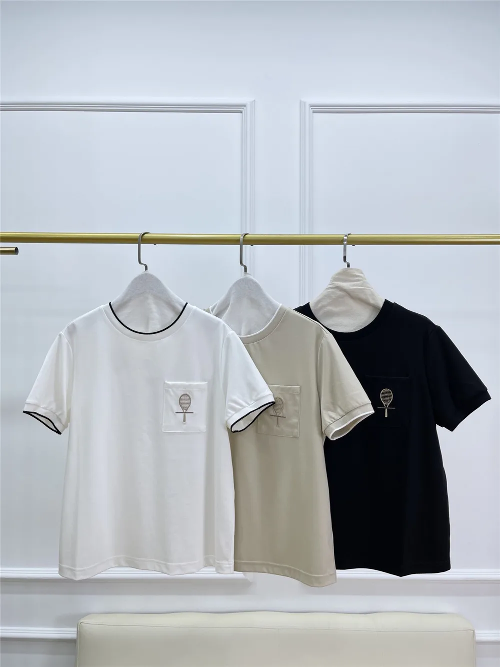 Casual Sports Suit For Women Chain Pocket Embroidered T- Shirt + Elastic Waist Wide Leg Pants 2 Piece Set