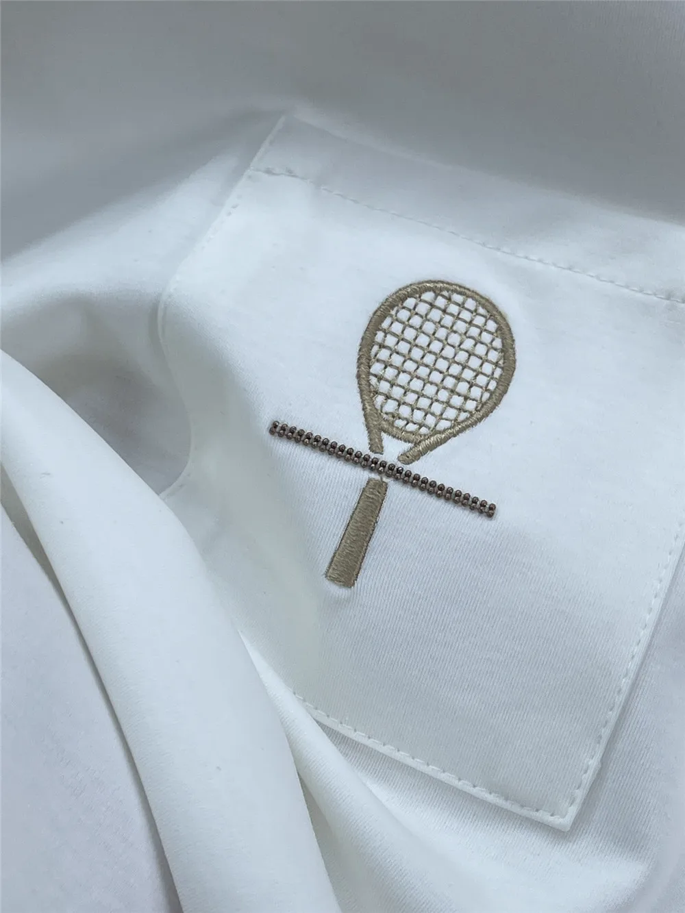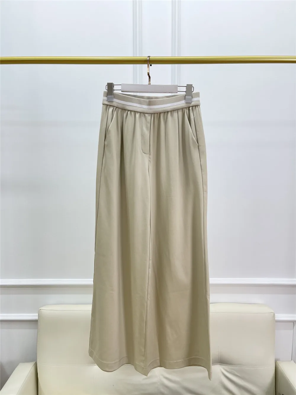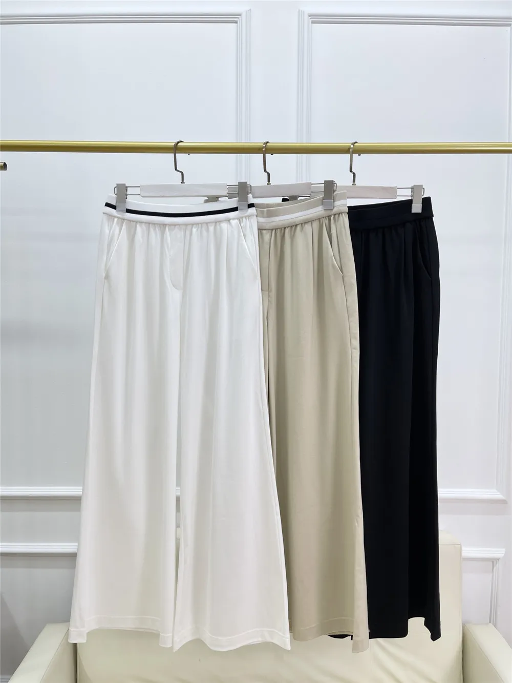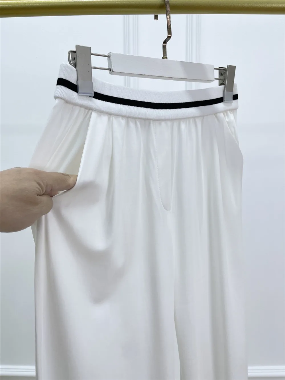 Casual Sports Suit For Women Chain Pocket Embroidered T- Shirt + Elastic Waist Wide Leg Pants 2 Piece Set