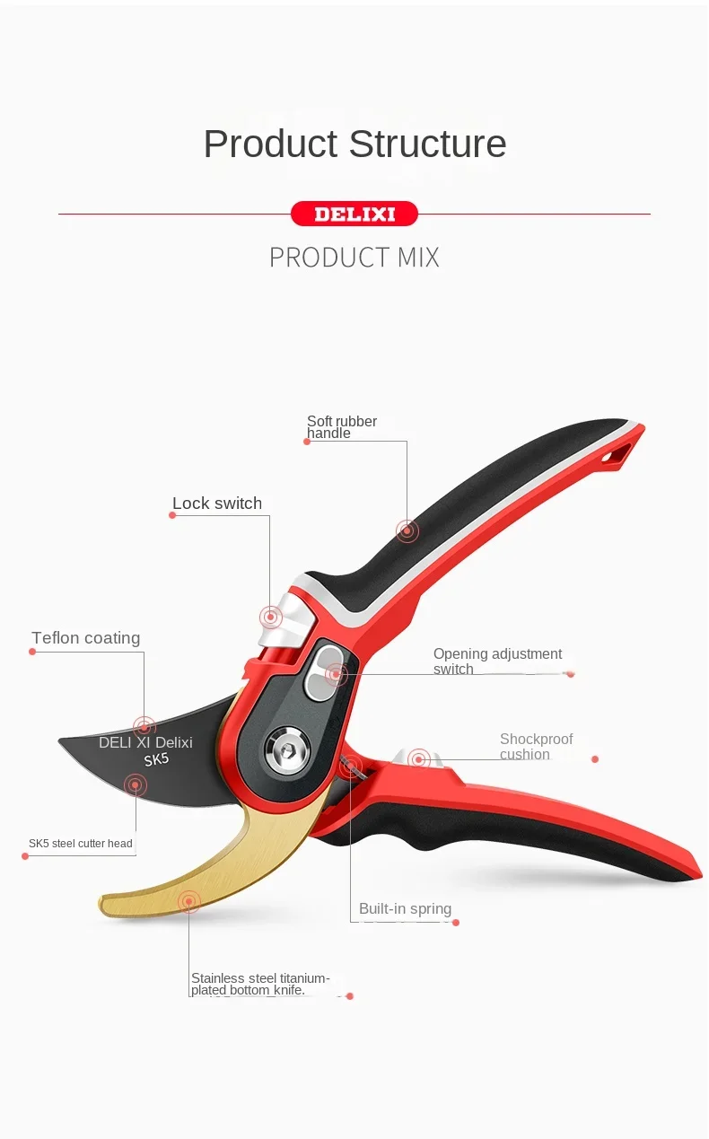 Stainless Steel Scissors Delixi SK5 Gardening Fruit Tree Pruning Shears Garden Branch Shears Flower Pruning Branch Scissors