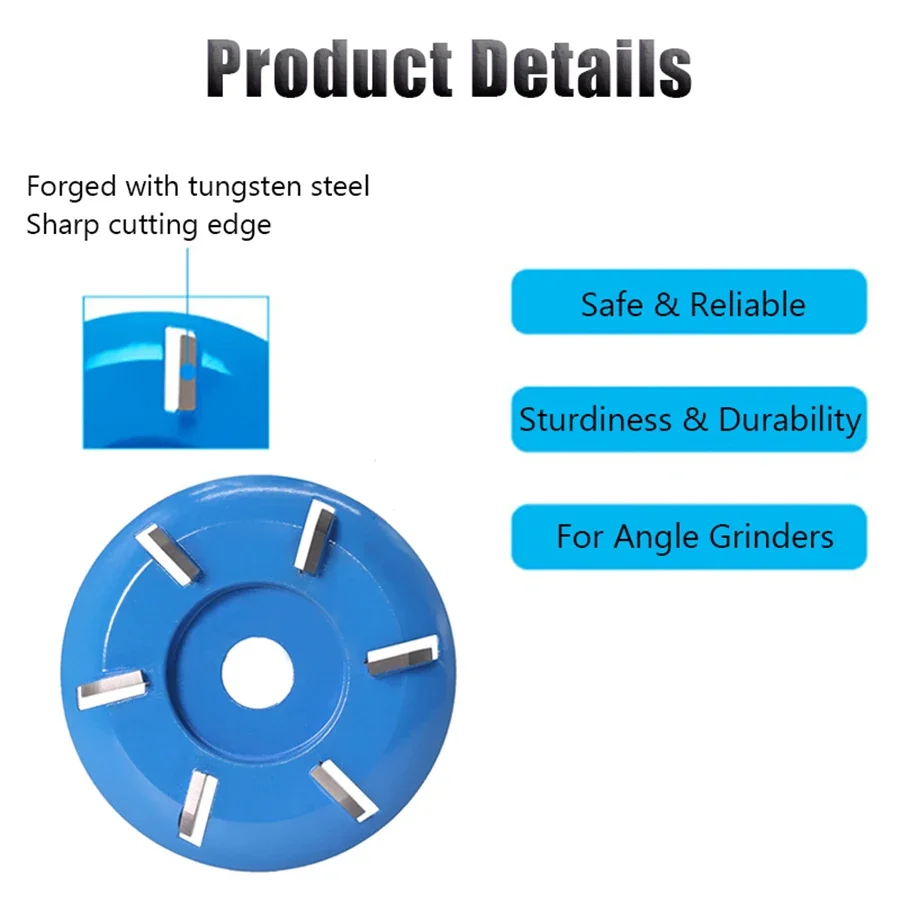 1pc 6-Teeth Curved Knife Wood Grinding Wheel Rotary Disc Wood Turbo Carving Disc Cutting Disc Accessories 22mm Bore 16mm Bore