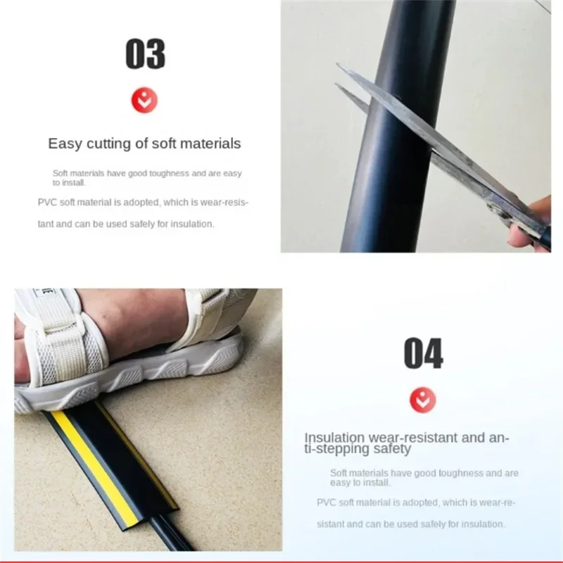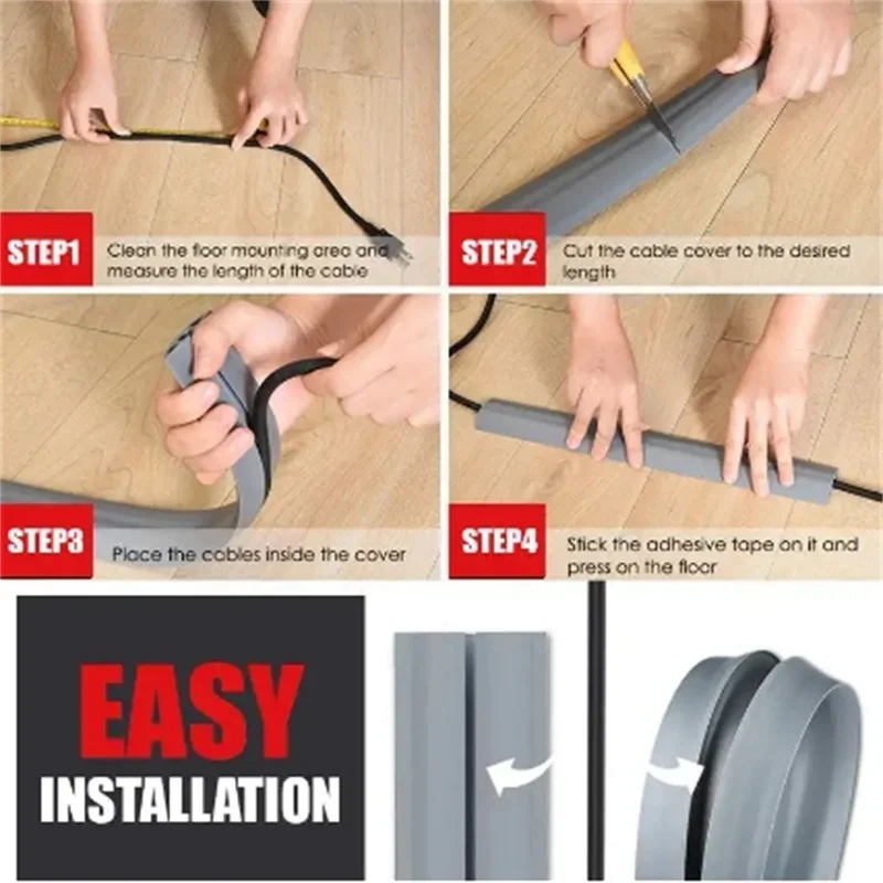Floor Cord Cover Self-Adhesive Cord Protector Extension Wiring Duct Protector Wire Slot Cable Concealer Hider Organizer