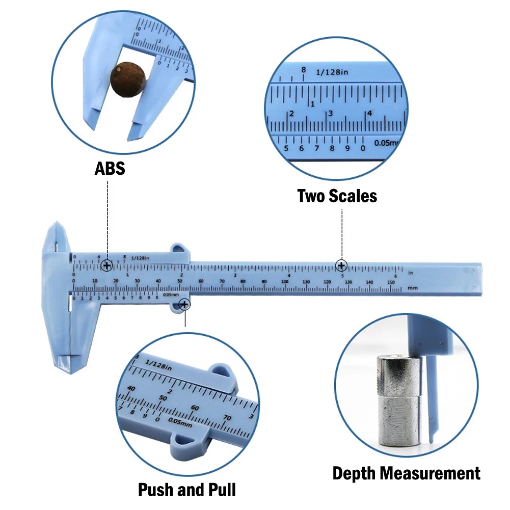 0-150mm Vernier Calipers Double Rule Scale Plastic Depth Height Jewelry Precision Measuring Instrument