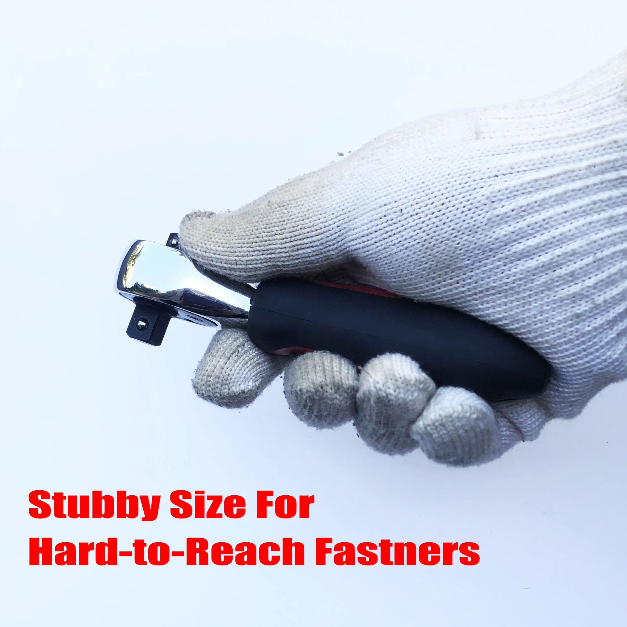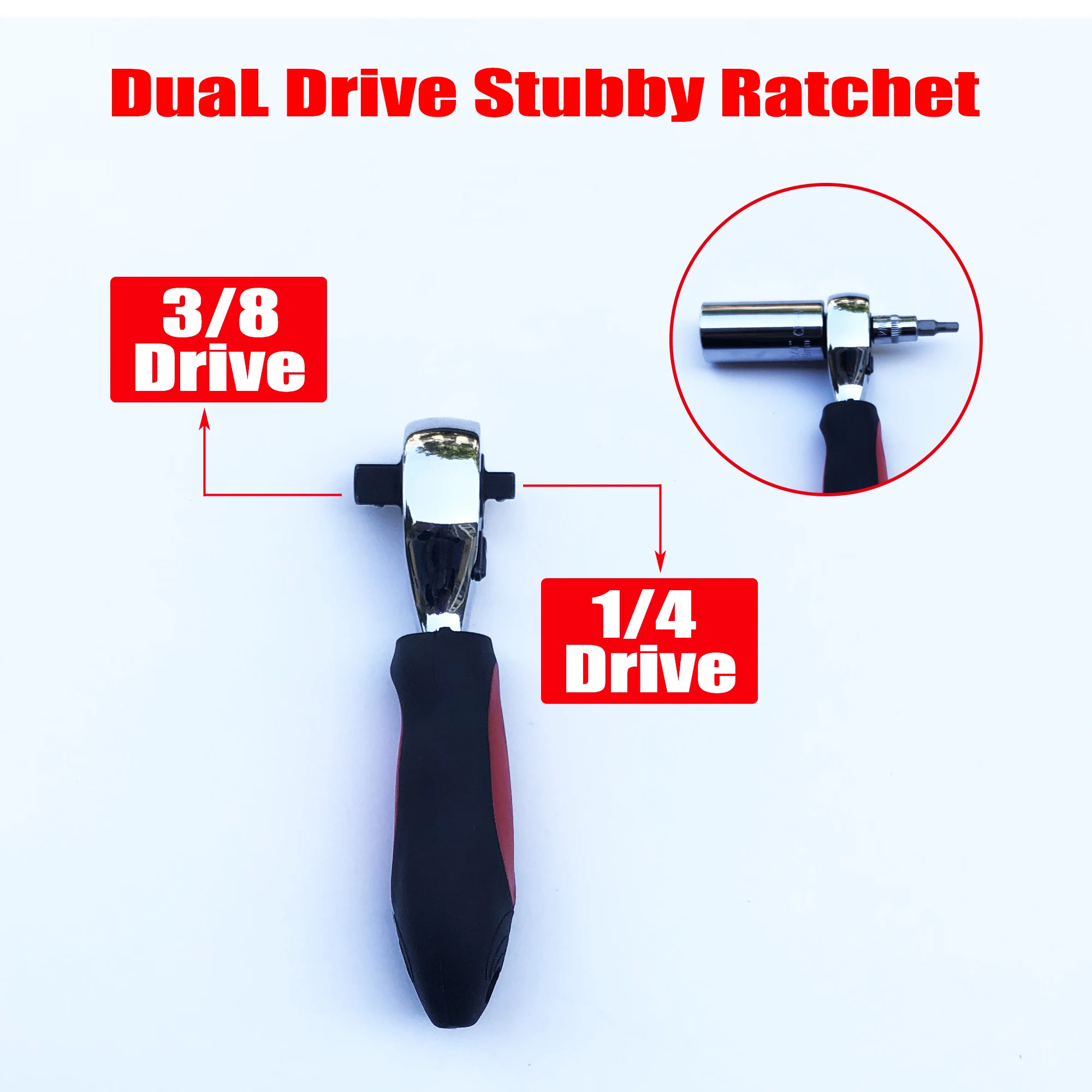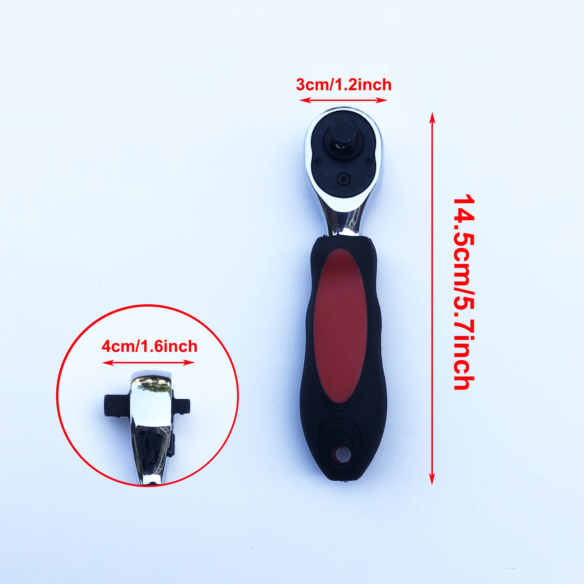 MacWork 72-Tooth stubby Mini Double-Ended Straight Handle Ratchet Wrench 1/4" 3/8" Auto Repair Anti-slip Socket Wrenches