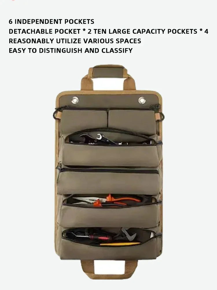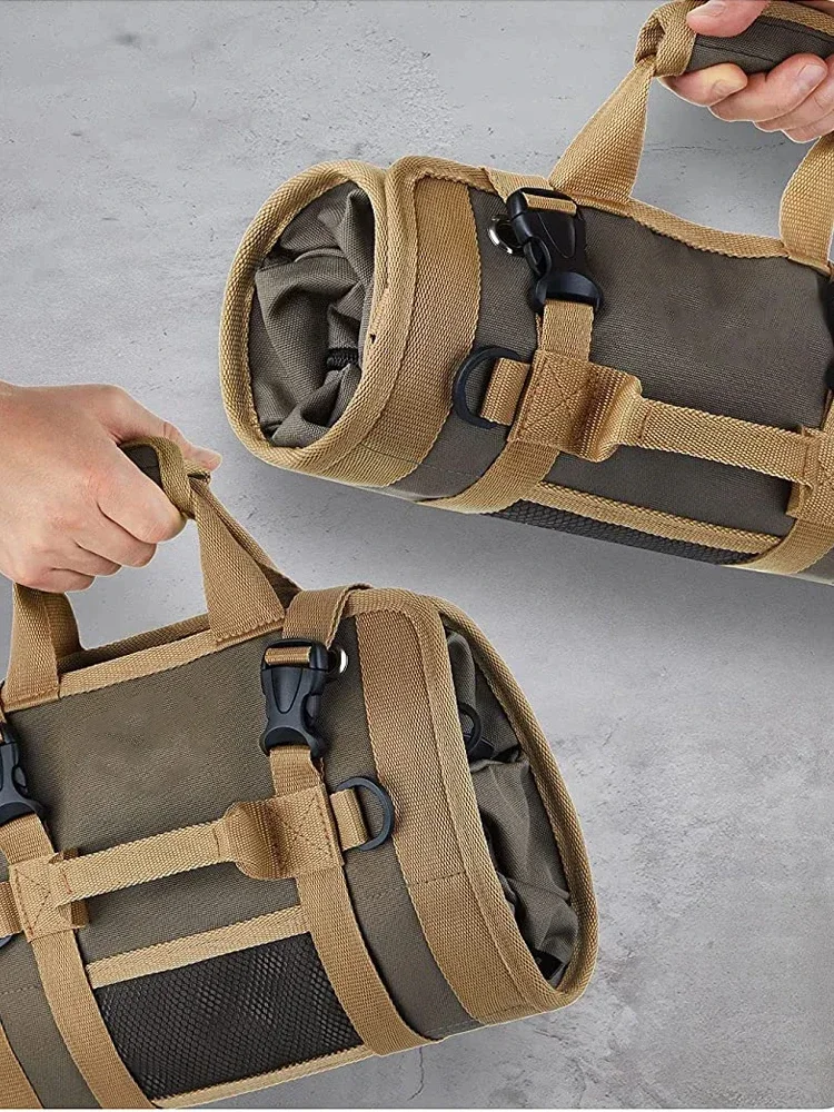 Multi-function large capacity roll-up kit, canvas tool roll car storage bag, hanging tool zipper carrier bag camping gear