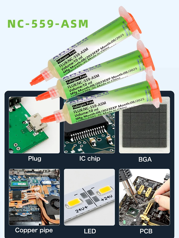 100% Original AMTECH NC-559-ASM BGA PCB No-Clean Solder Paste Welding Advanced Oil Flux Grease 10cc Soldering Repair Paste