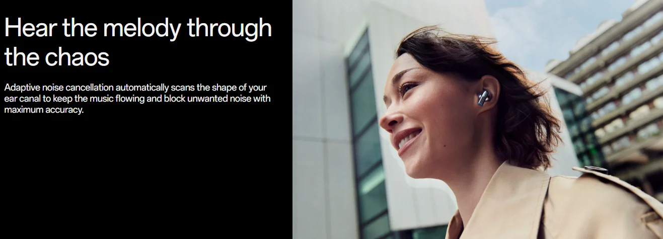 Adaptive noise cancellation automatically scans the shape of your ear canal to keep the music flowing and block unwanted noise with maximum accuracy.