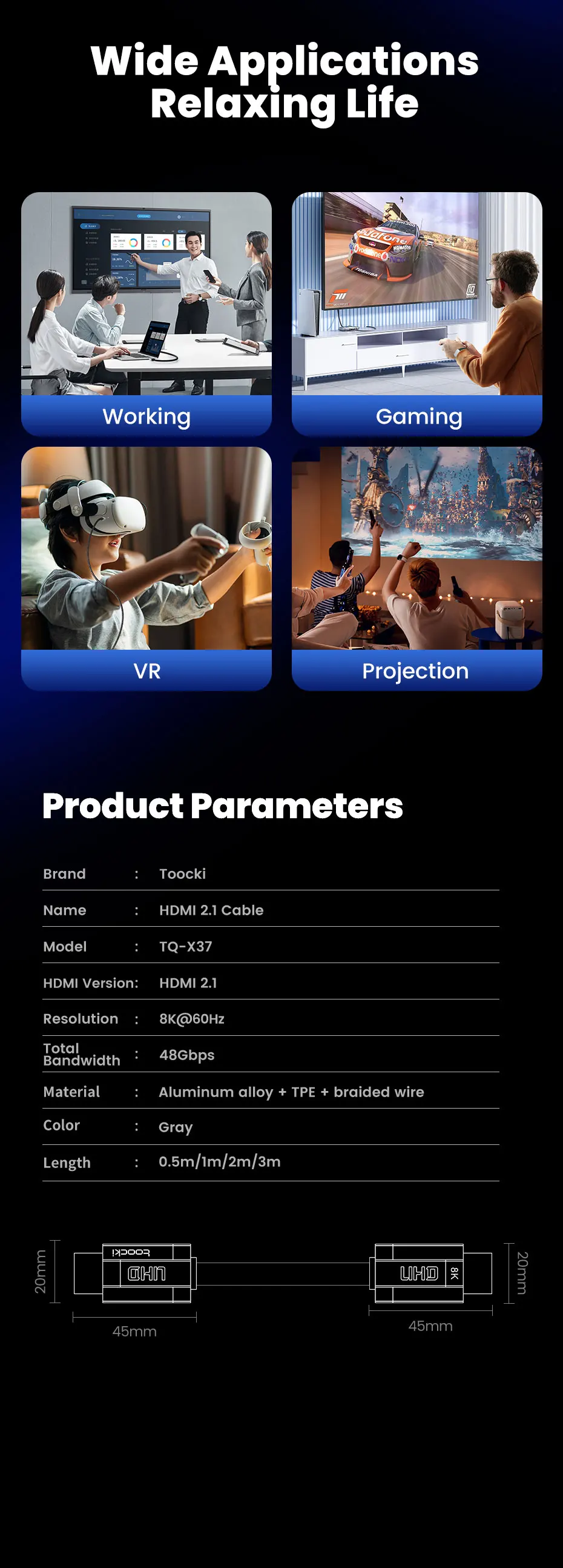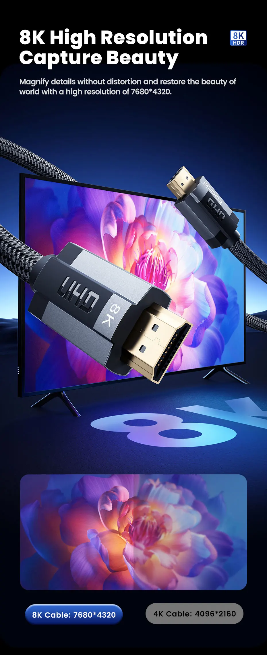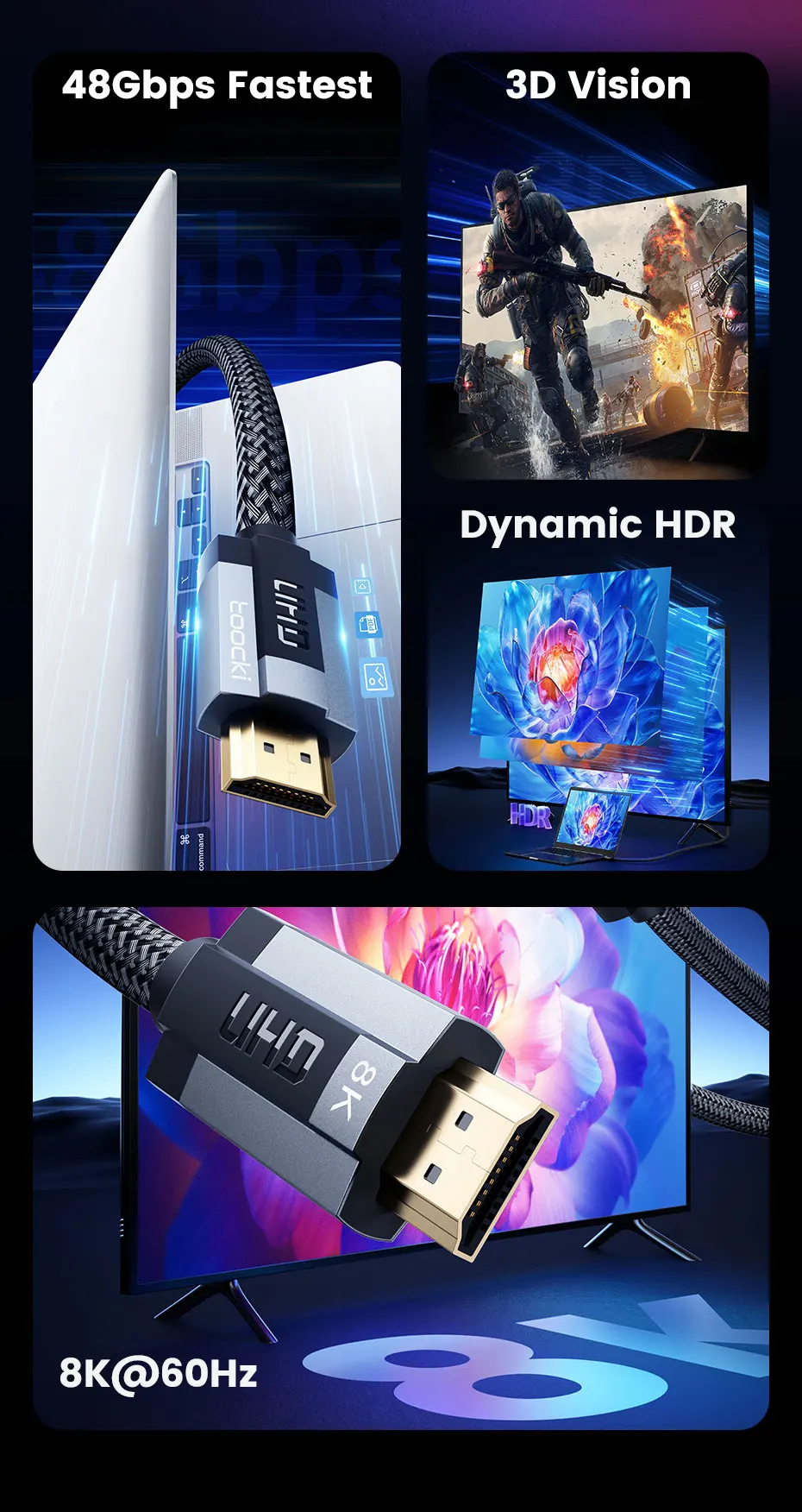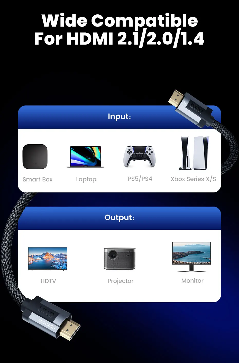 Toocki 8K HDMI-Compatible Cable For Xiaomi TV Box 48Gbps For PS5/4 Switch Ultra High Speed Certified 2.1HDMI-Compatible Splitter