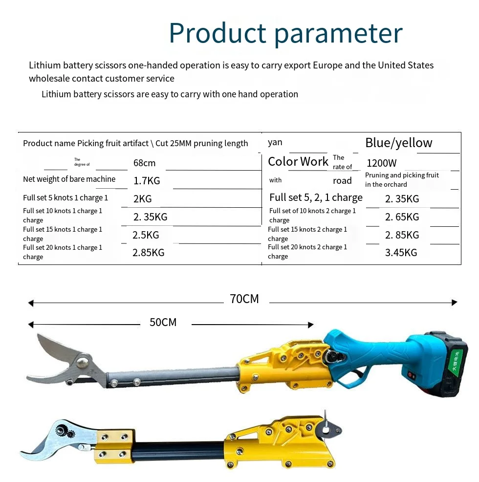 Extended Fruit Tree Pruning Machine Fruit Picking Lychee, Longan, Cherry High Branch Shears 전지가위 전동전지가위 충전식전지가위 전동 전지가위 전정전동가위