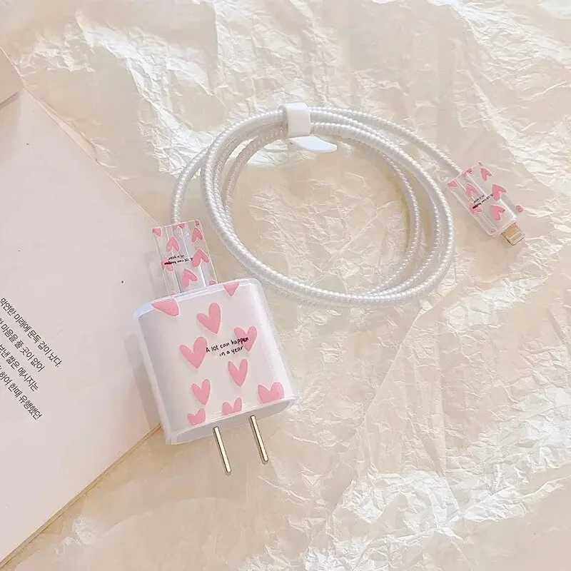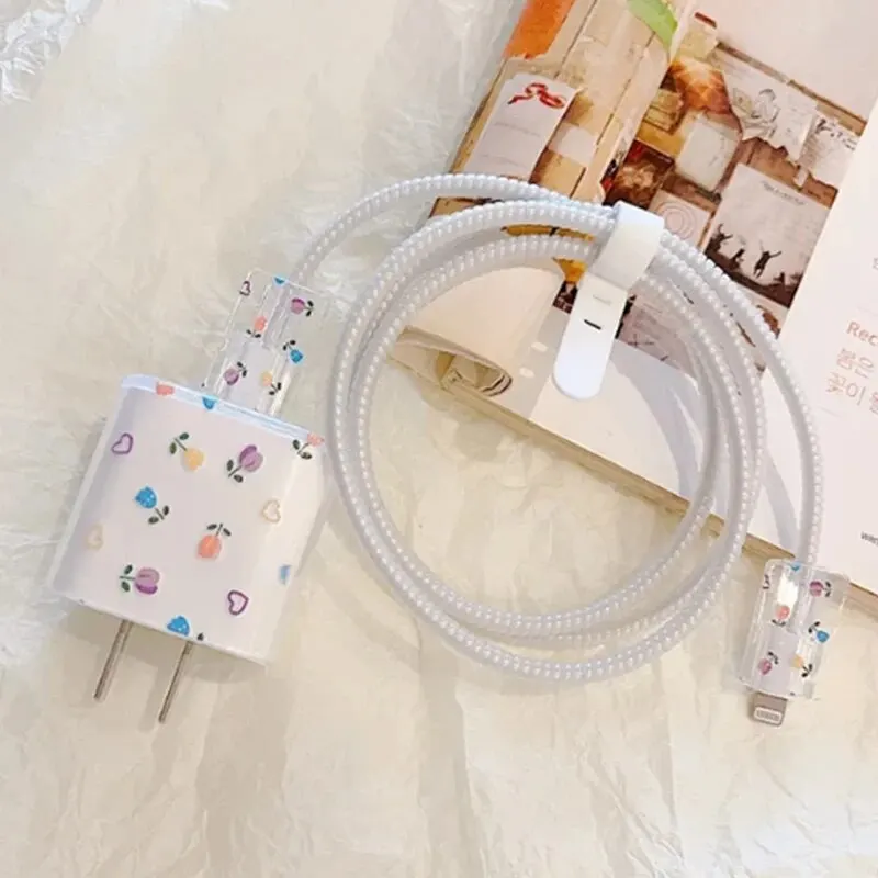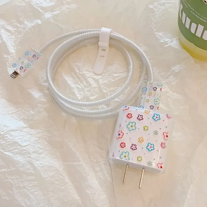 Cartoon Flower Soft Silicone Charger Case for iPhone 15 14 13 Apple 18/20W Charger Head Protective Sleeve Cable Protection Cover