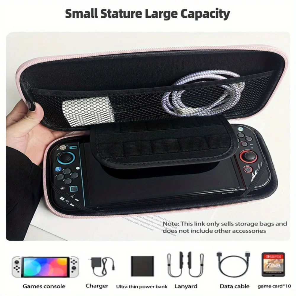 LARGE STORAGE: A large zippered mesh pocket provides secure storage room for some small Nintendswitch accessories like charging cable, slim power bank, ear buds, and 2 extra Joy-Cons, Easier to Close and Easier to Carry. It also build with 10 game card slots, allowing you to carry and change your favorite games anytime & anywhere.