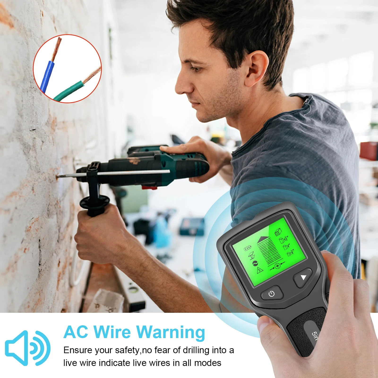 5 in 1 Stud Detector Wall Wood Scanner Digital Handheld Wall Detector Live AC Wires Cable PVC Water Pipe Metal Finder Scanner