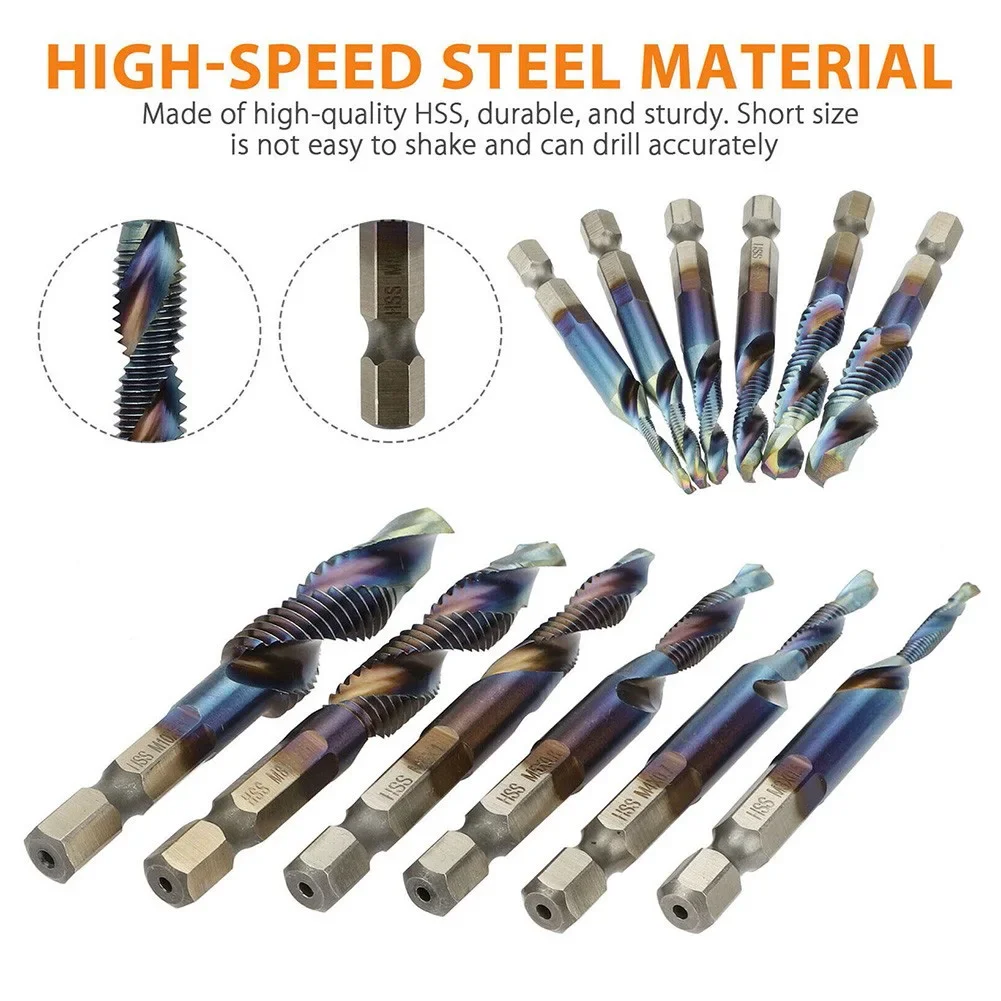12Pcs HSS 1/4" Hex Shank Titanium Coated Screw Thread Metric Tap Drill Bits Set M3 - M10 Screw Tap Drill Bits Power Tools