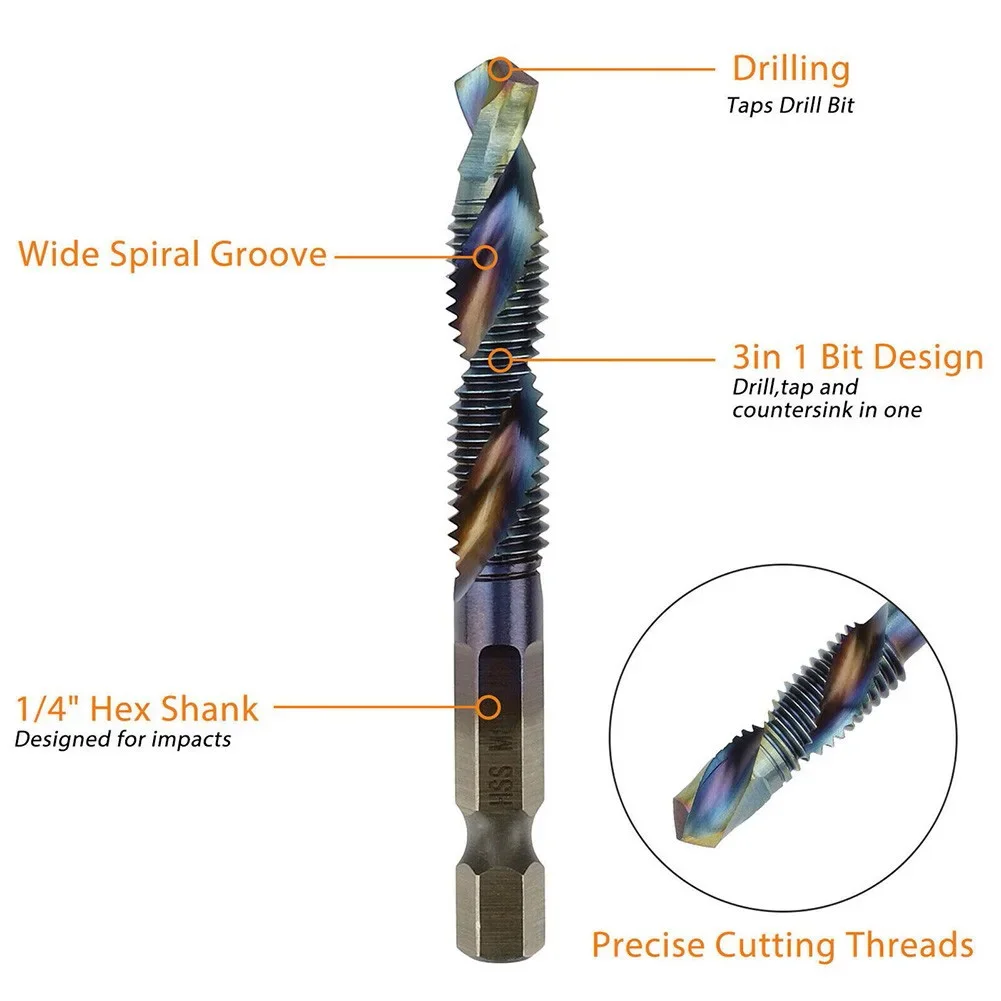 *Wide Spiral Groove: The tap bit set also has a wide spiral groove, which allows chips to easily escape from the hole.
