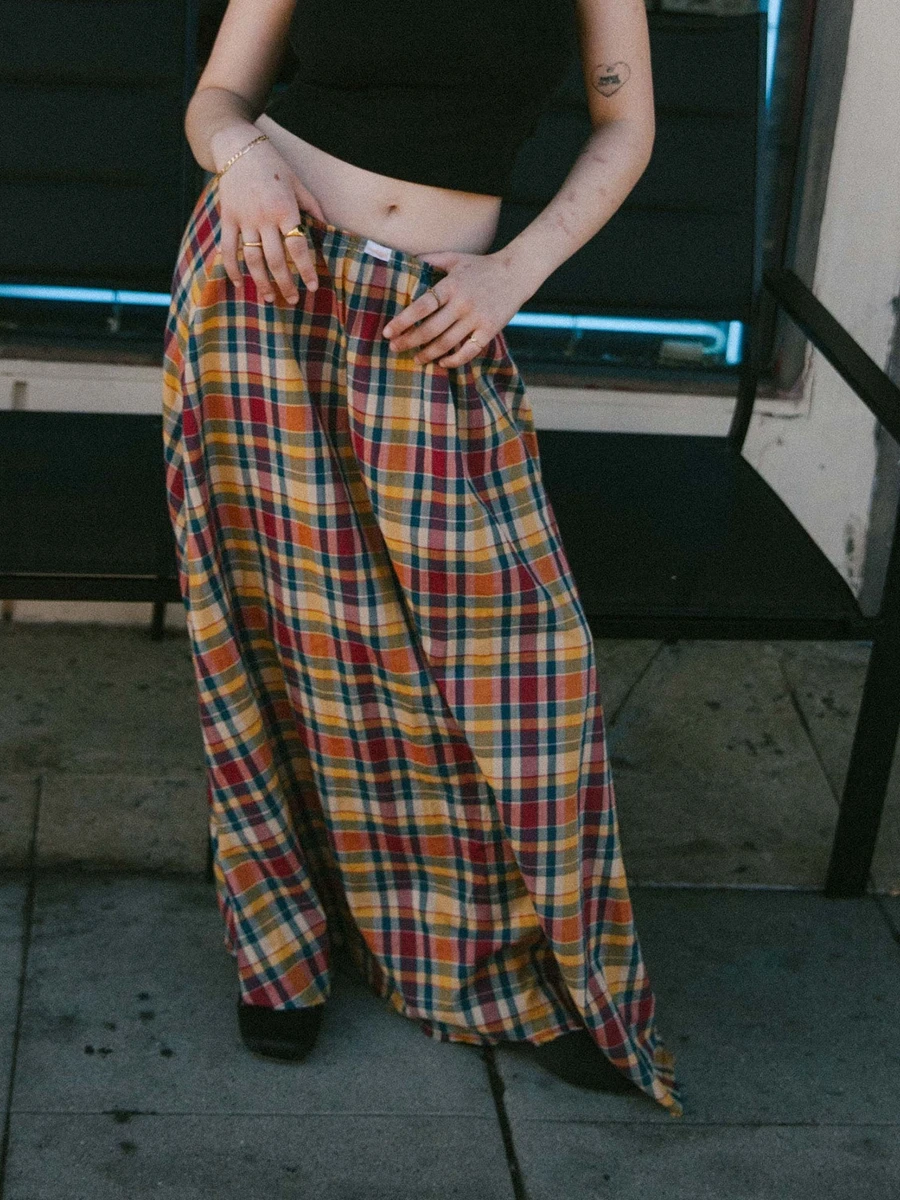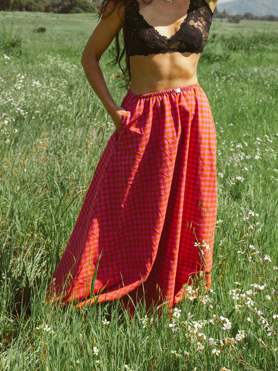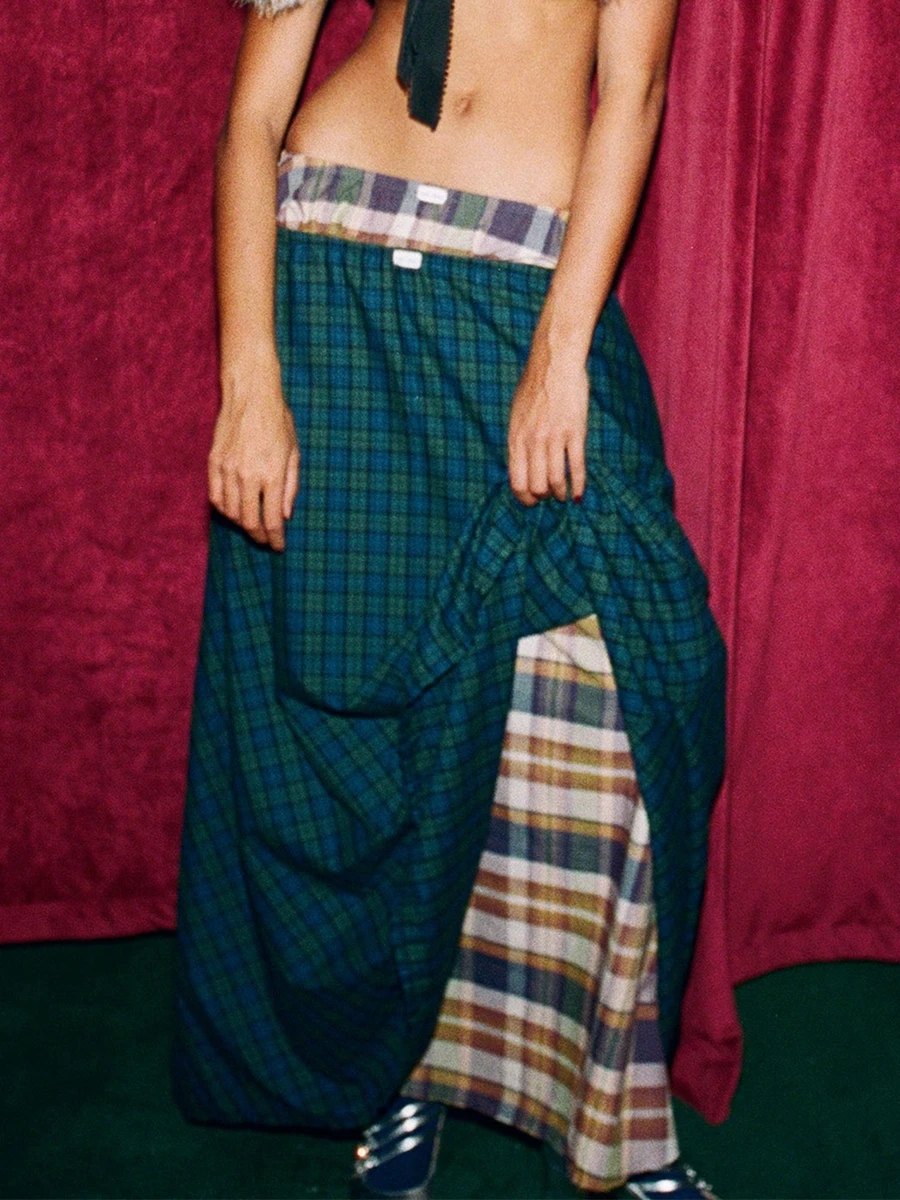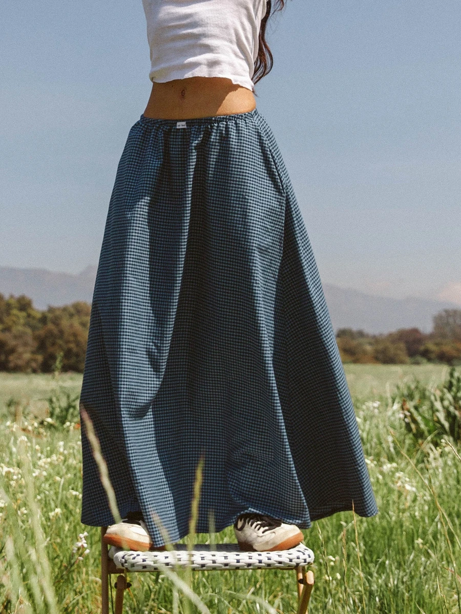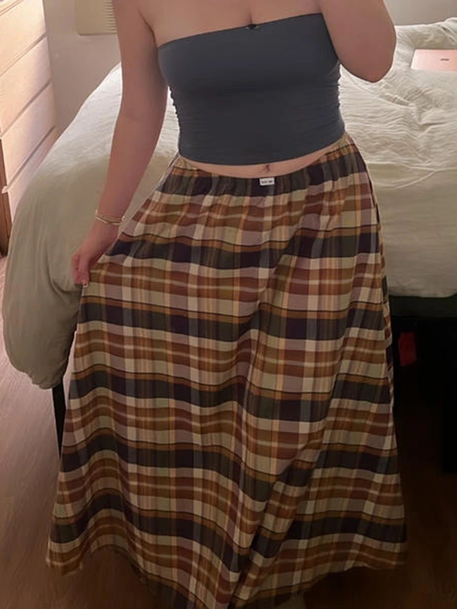 Gaono Y2K Plaid Maxi Skirt for Women Elastic High Waist Gingham A Line Flowy Swing Long Skirt Summer Retro Boho Streetwear