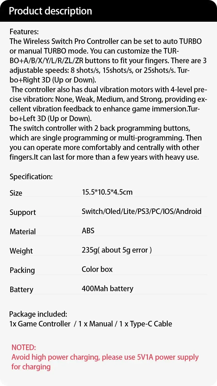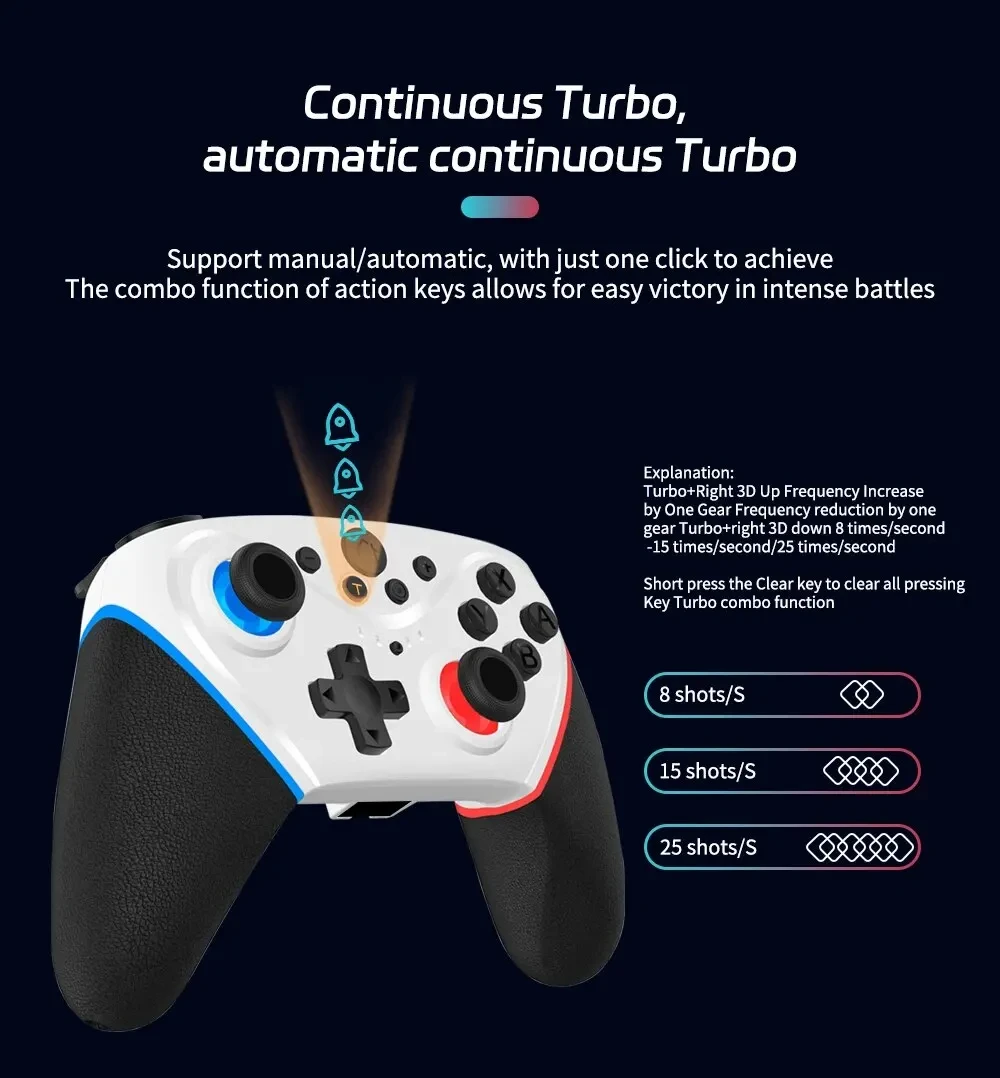 • Compatible with Multiple Platforms :This wireless switch controller is compatible with Nintendo, Steam, and other popular gaming platforms, offering a versatile gaming experience.