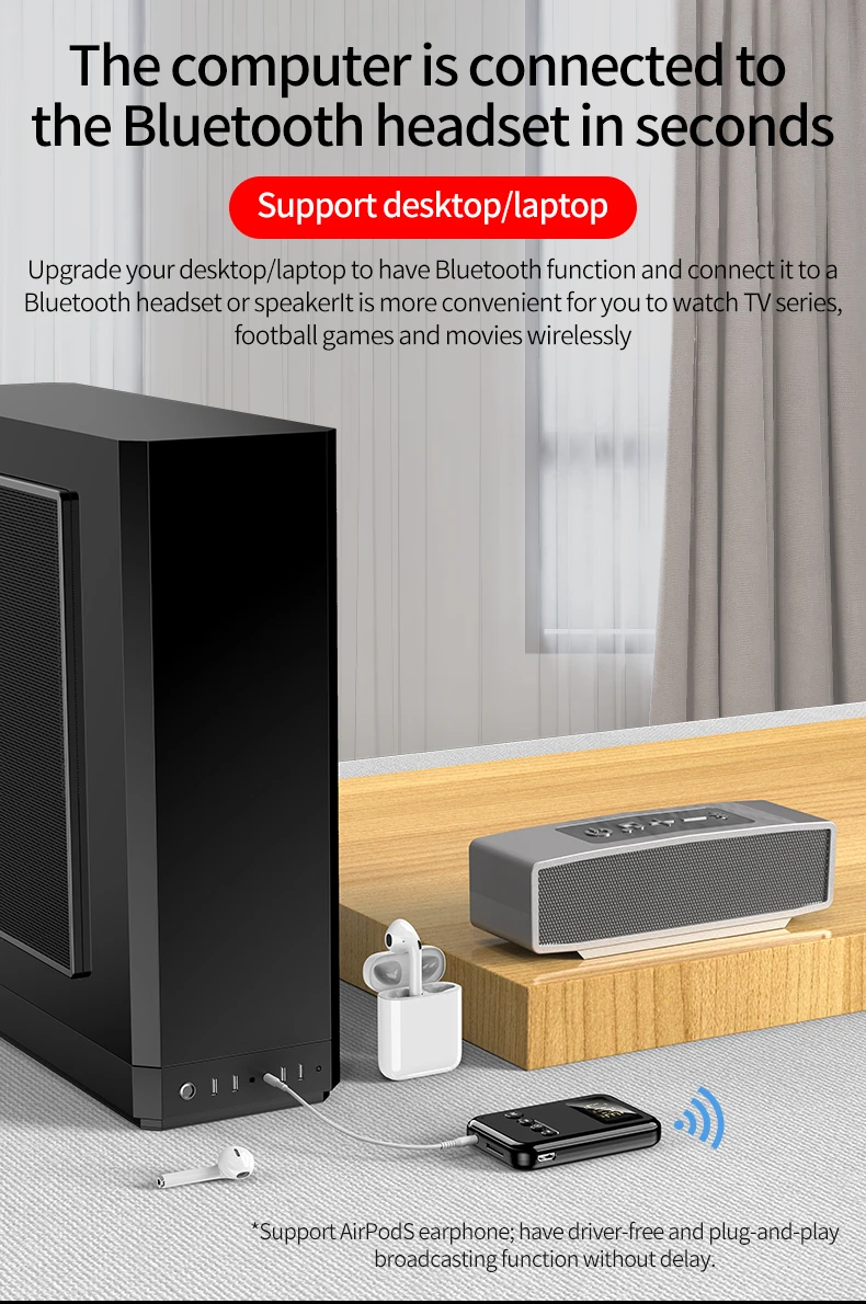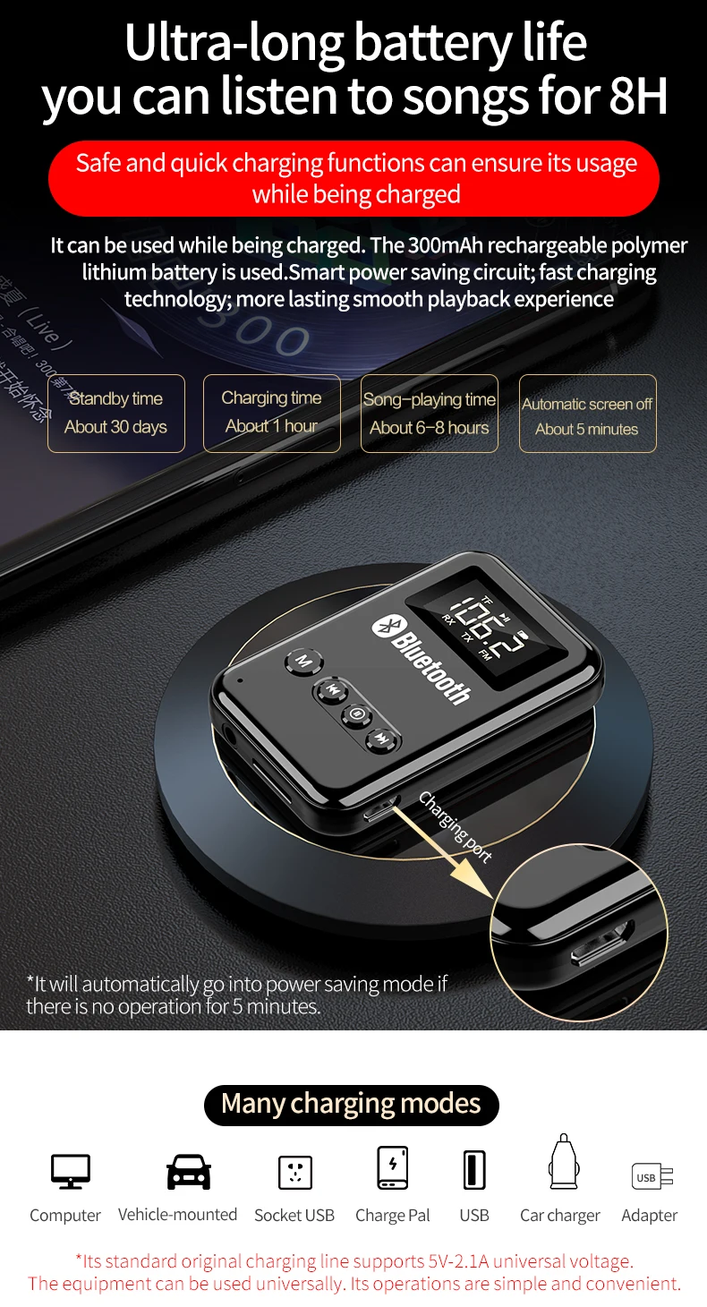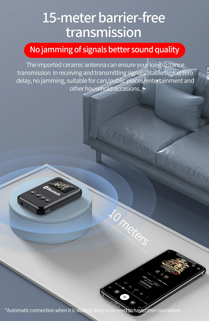 Experience seamless connectivity with the versatile Bluetooth Receiver Transmitter 5.0 Wireless Adapter. Its multifunctional design allows you to easily convert wired audio into Bluetooth signals and transmit them to your preferred device. With a sleek LCD display showing searched Bluetooth devices, you can conveniently switch between transmitter and receiver modes. Plus, the Bluetooth 5.0 technology guarantees wider transmission distance, faster data rate, and minimal power consumption. Ideal for home sound systems or vehicles, this adapter ensures a reliable hands-free call experience. Get yours today and enjoy the benefits of enhanced connectivity.