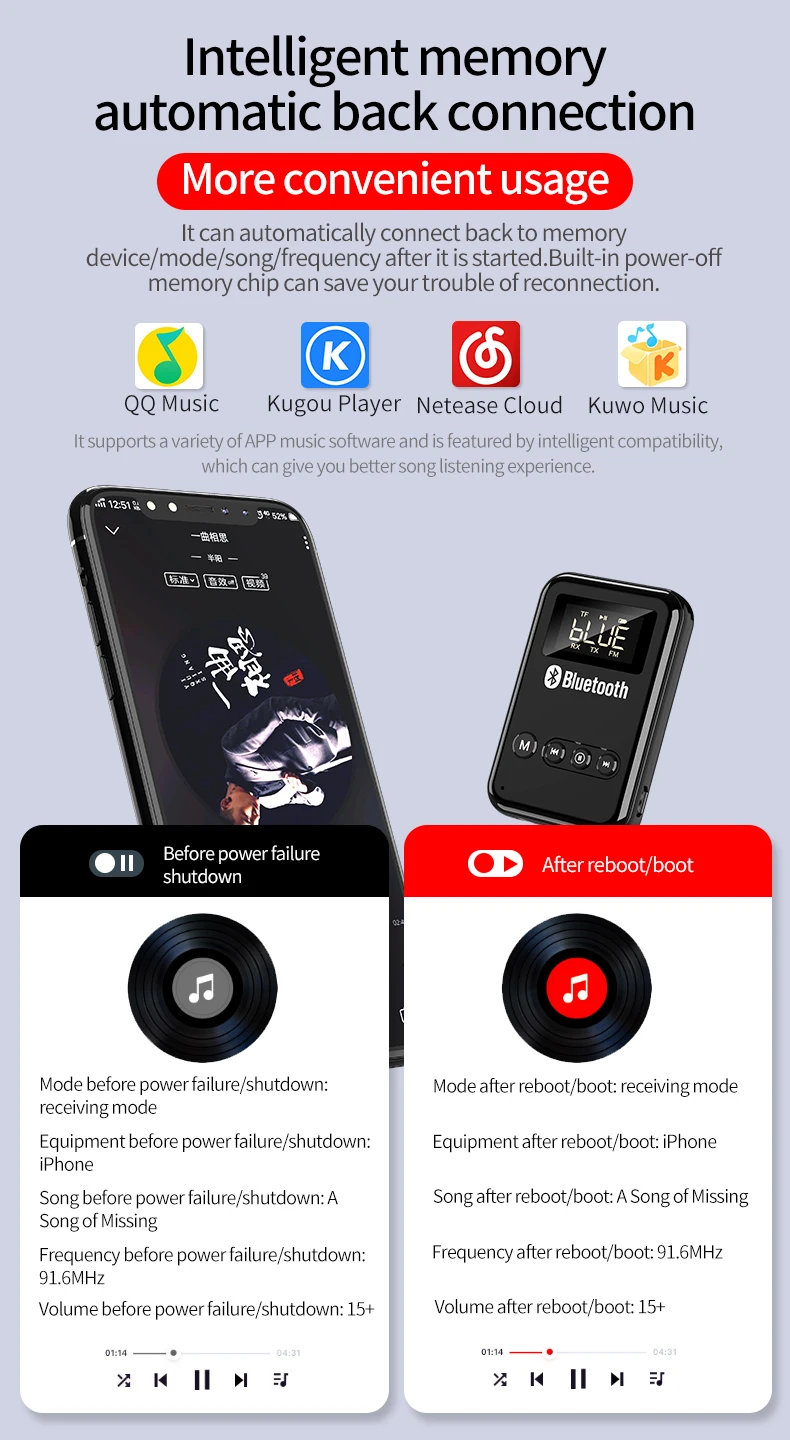 ★ LCD Display: The new LCD display can display searched Bluetooth devices
