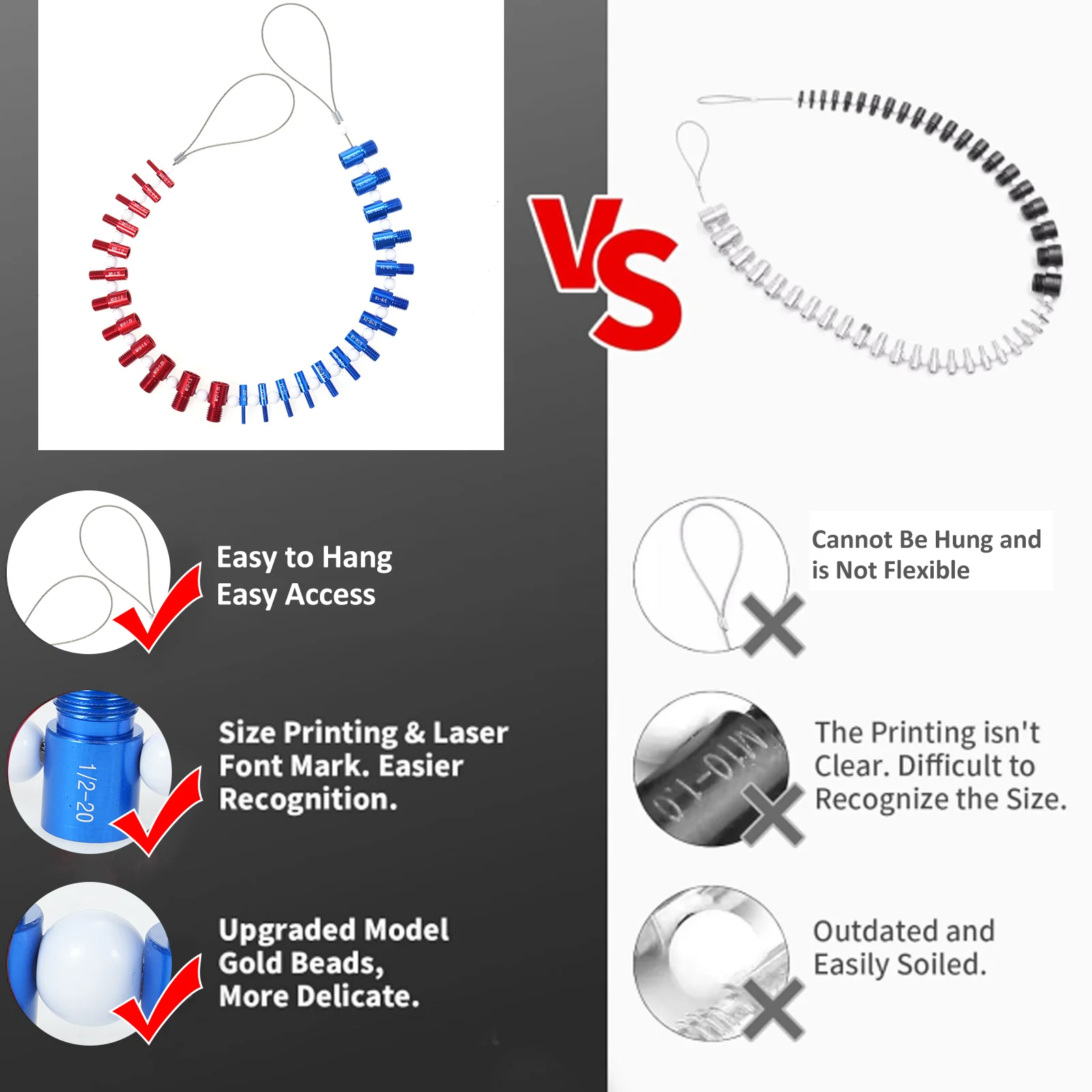 【Easy to Hang】Our nut and bolt gauge comes with a convenient hanging feature that allows you to hang it on a pegboard or tool rack for easy access.