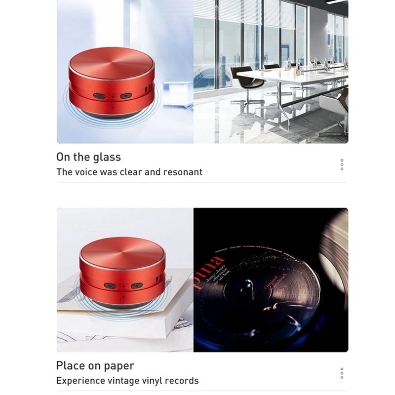 2. Different sounds with different surfaces: This speaker uses bone conduction technology to give you a diy sound experience. You can test and enjoy different sounds - almost like using different instruments. Putting it on different surfaces like glasses, guitars, kraft paper boxes, plastic storage boxes, photo frames, sports headphones or even dashboards can give you a variety of sound effects.