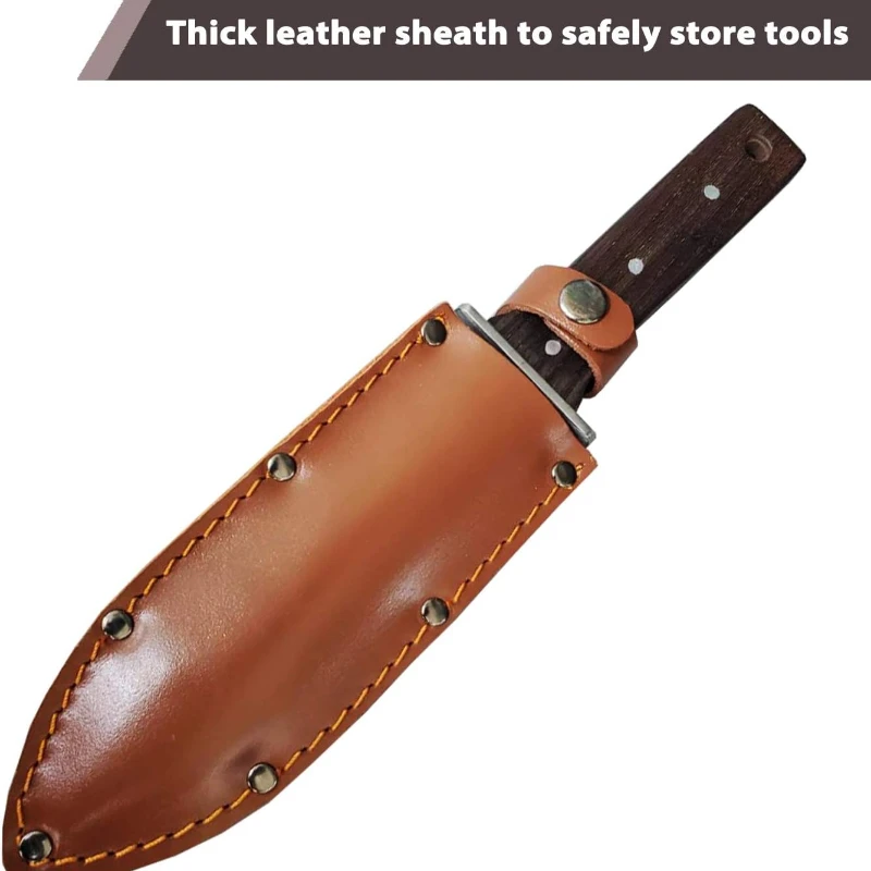 Professional Hori Garden Knife with Leather Sheath, Protective Handguard, Garden Tools Spatula for Weeding, Digging, Cutting