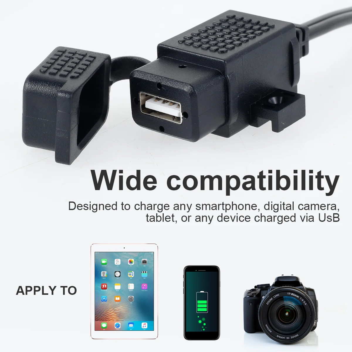 [Waterproof Cover] This product includes fully enclosed rubber cover to protect the USB charging port from water and dust to prolong its lifespan. It is suitable for most motorcycles.