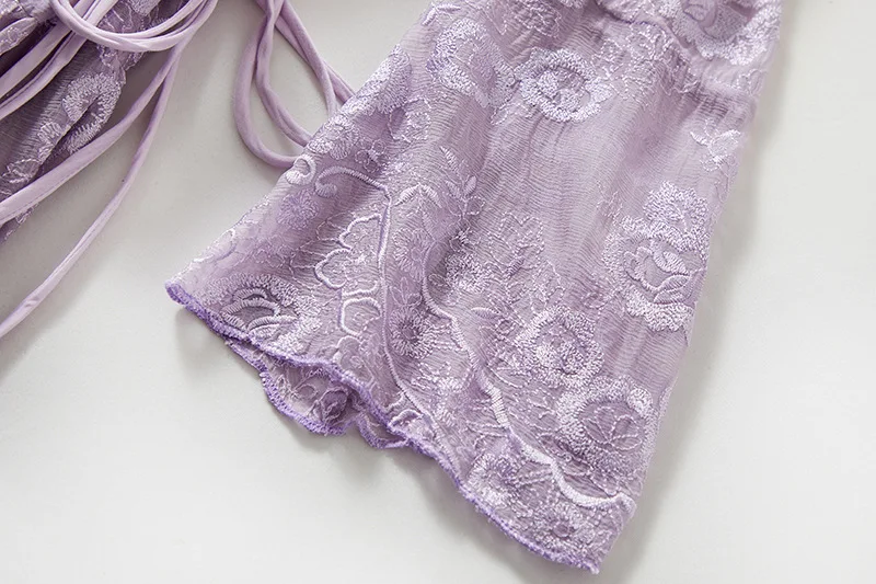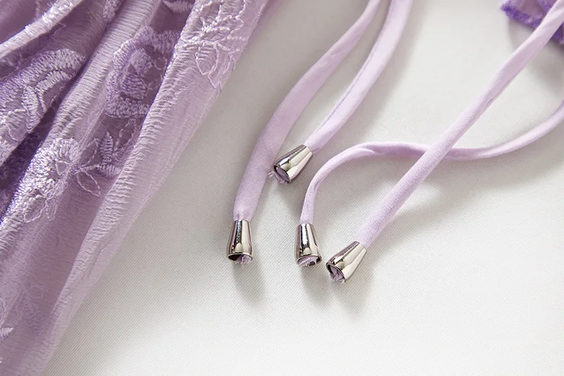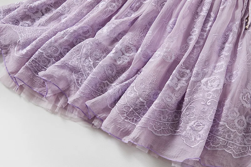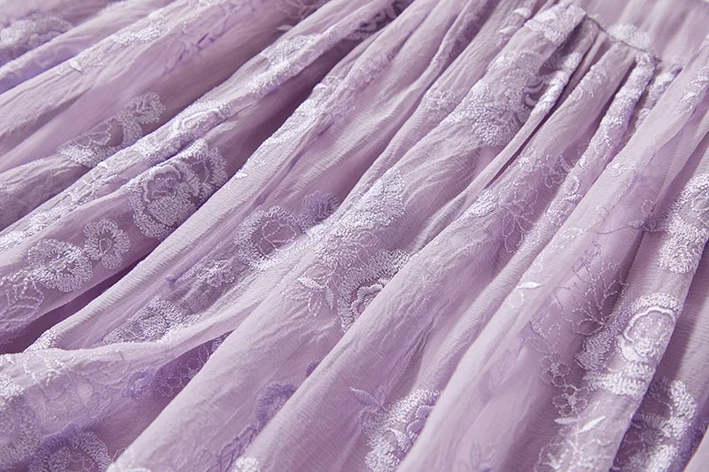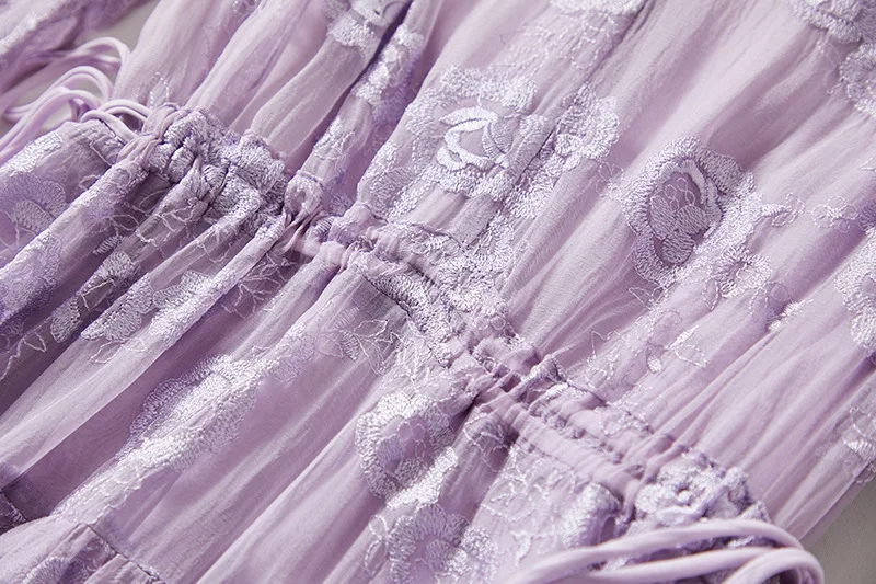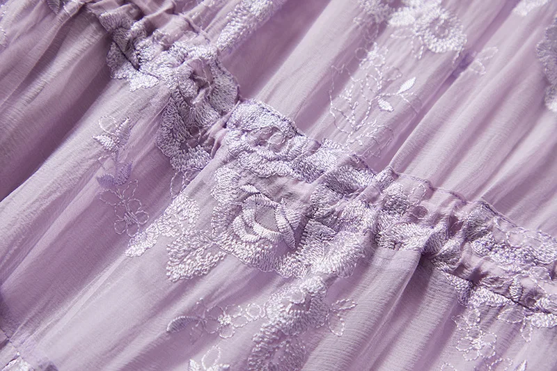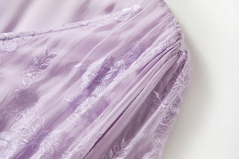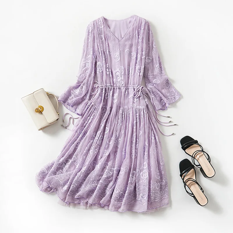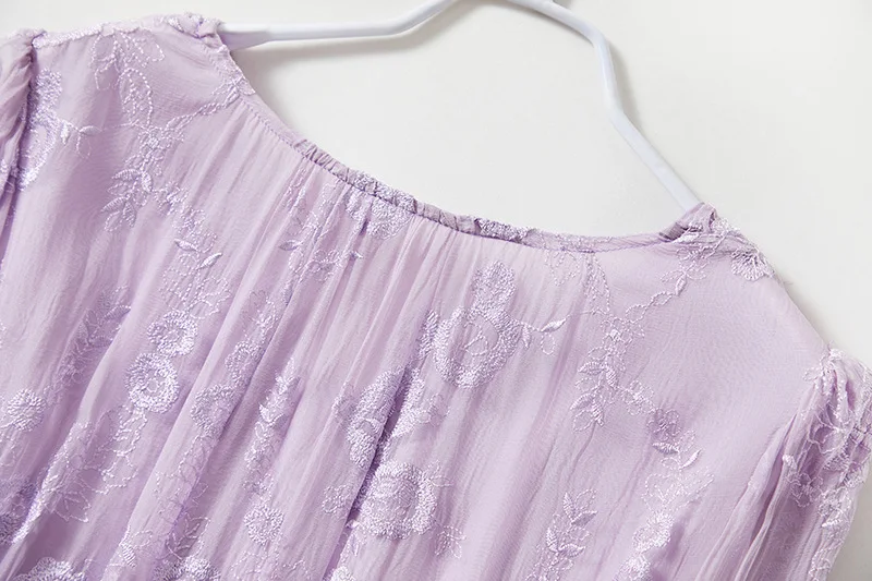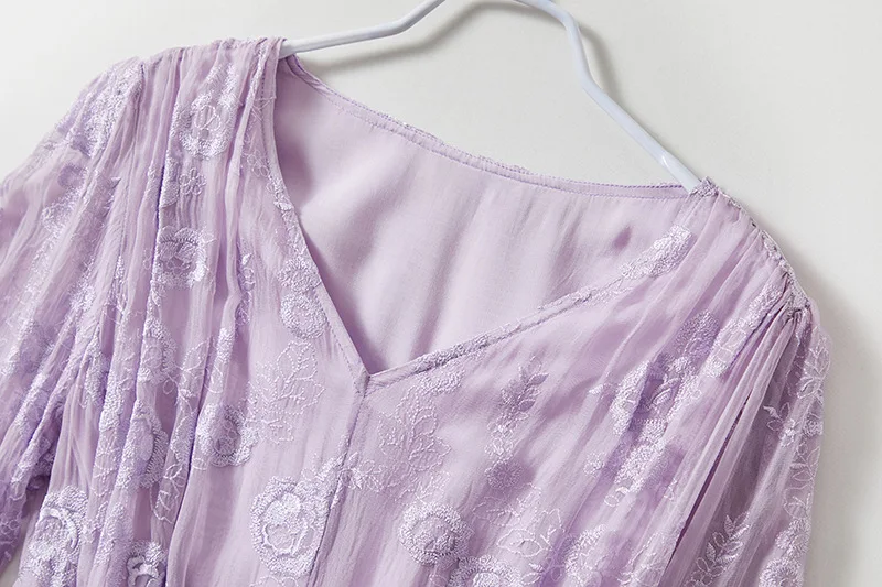 Birdsky, 1PC Women dress V neck embroidery body 100% real mulberry silk Lavender color, S-886