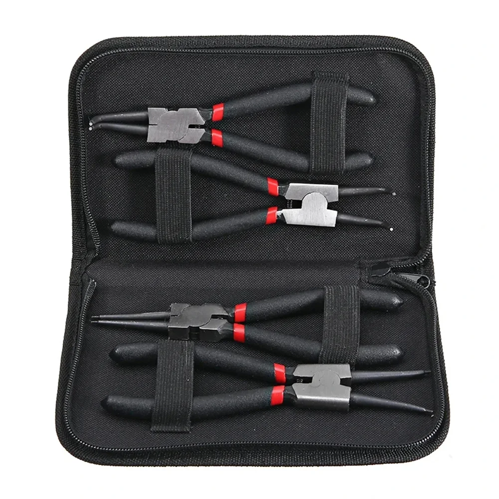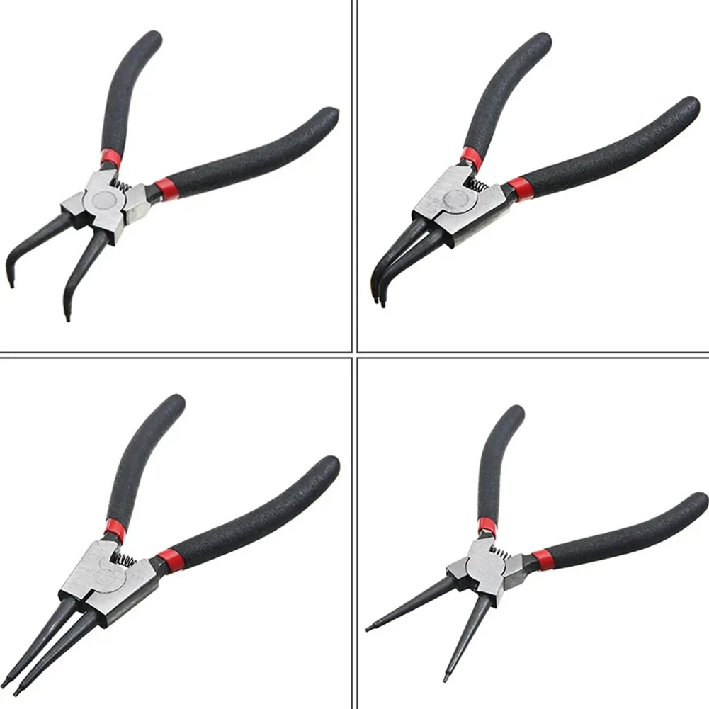 7 Inches Long Nose Plier,4Pcs Circlip Plier Set,Inner Outer Staight Bent,Plier Retaining Snap Ring Remover Tool