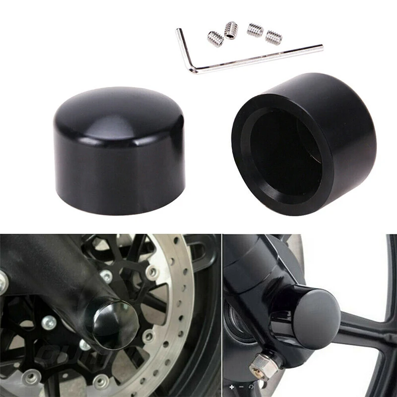 2x Black/Chrome Motorcycle Front Axle Nut Covers Caps Bolt Aluminum Fit For Harley Dyna Electra Glides Softail Sportster 2008-17